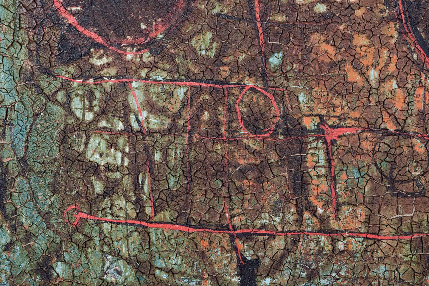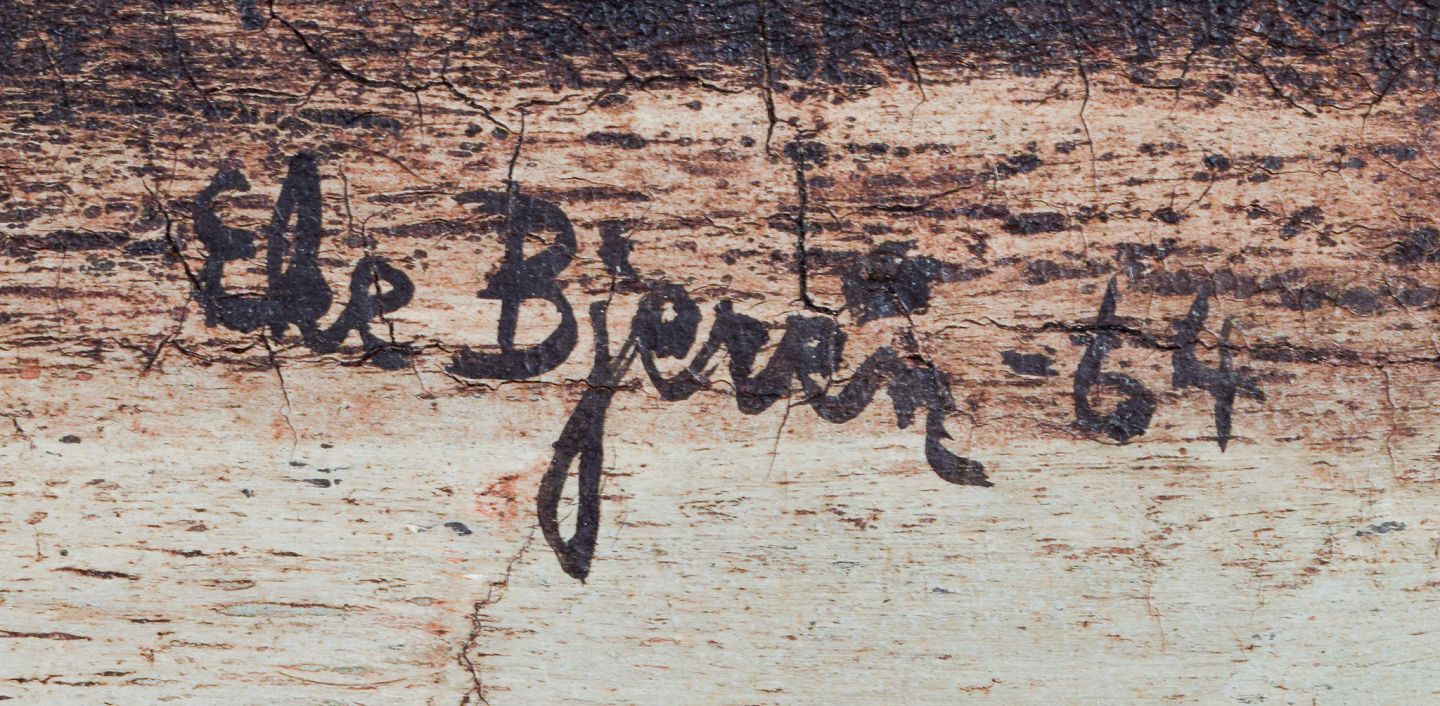 Eke Bjerén (1943-1999), svensk kunstner, olie på plade. Abstrakt komposition.