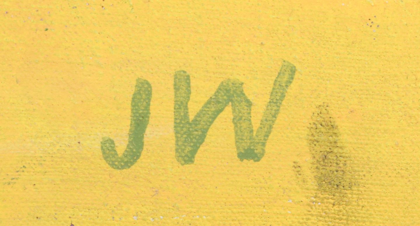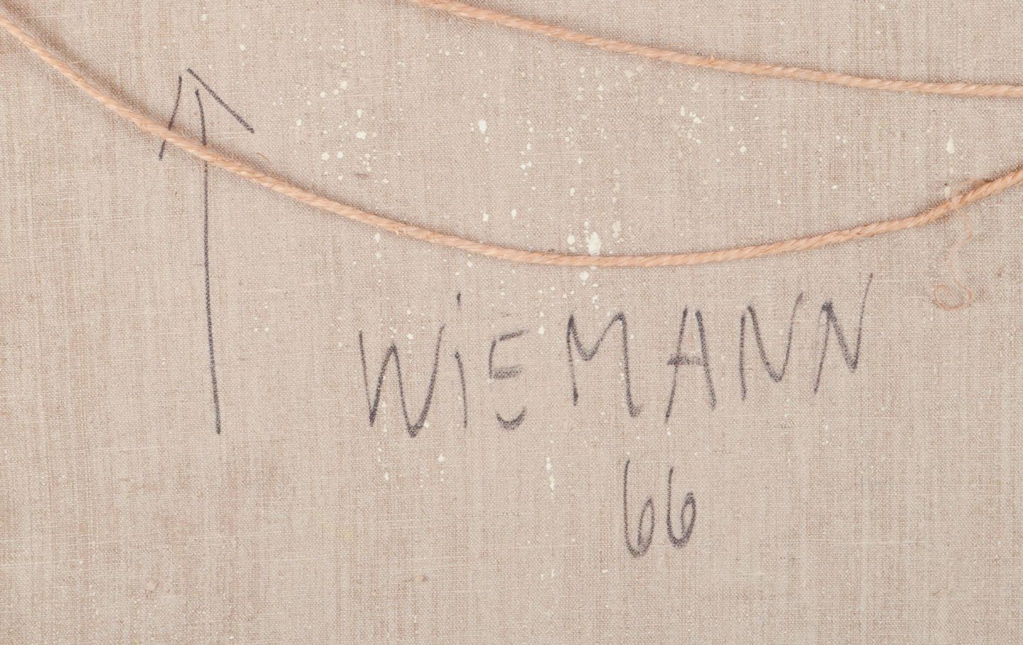 Wismann, tysk kunstner, olie på lærred, abstrakt komposition.