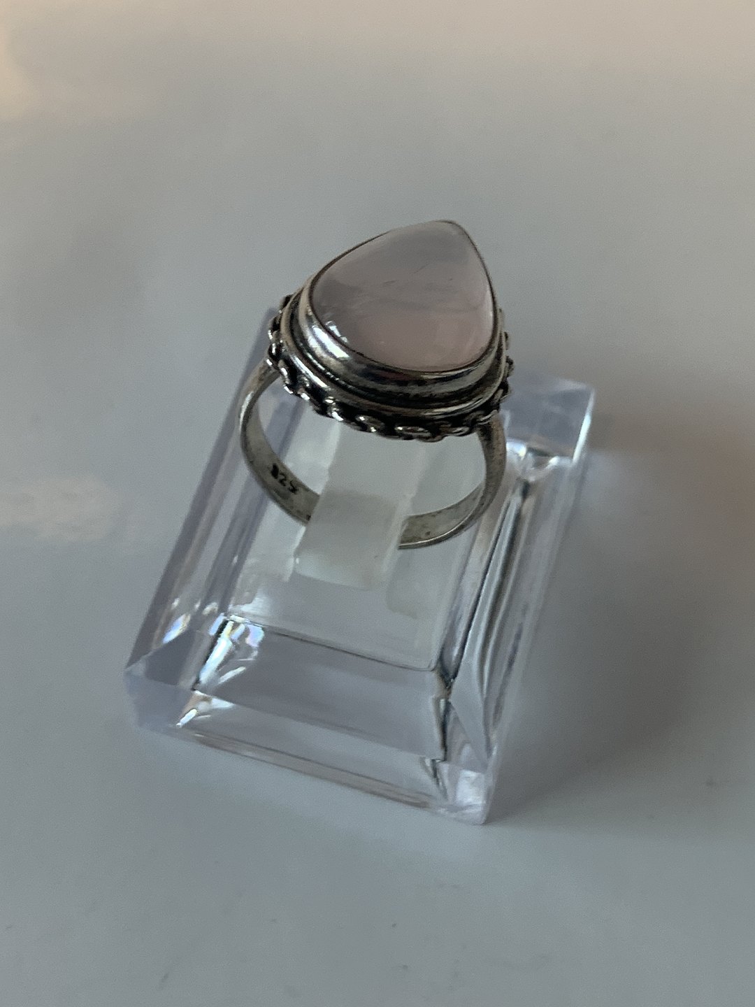 Sølv Damering med en rosa kvarts