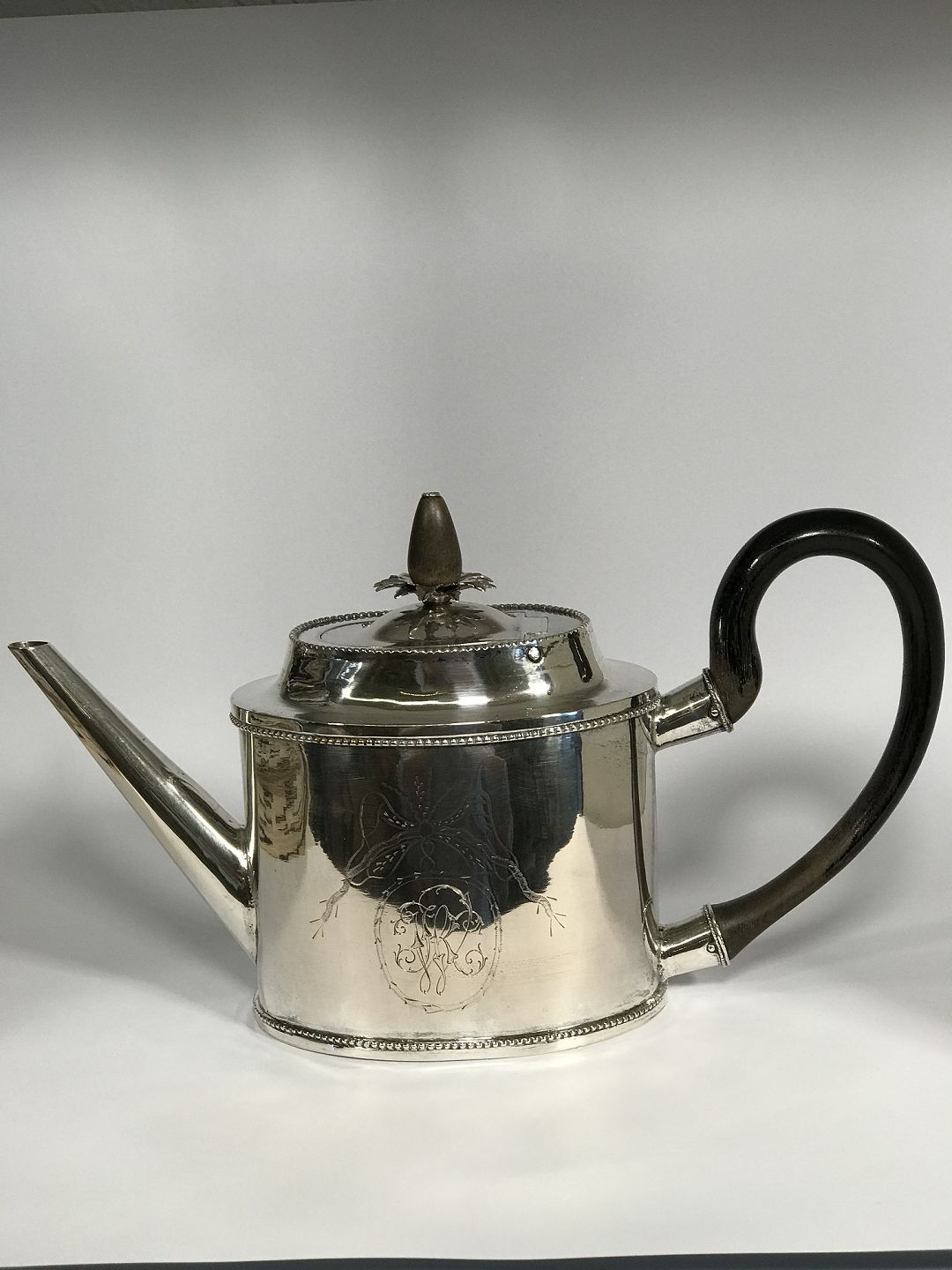 Tekande af sølv. Mester Thomas Jensen Aabenraa 1796-1825 vægt 490 gram L 26,5 cm.