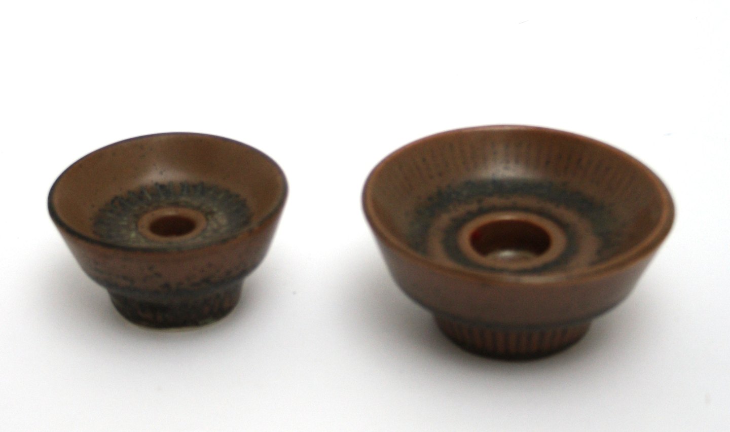 Knabstrup stoneware, Nøddebo brun udgave af Knabstrupstellet. Lysestager.