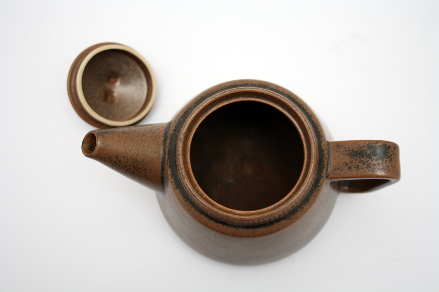Knabstrup stoneware, Nøddebo brun udgave af Knabstrupstellet. Tekande. Højde 14,5 cm. Pris: 350 kr. stk. Lager: 2