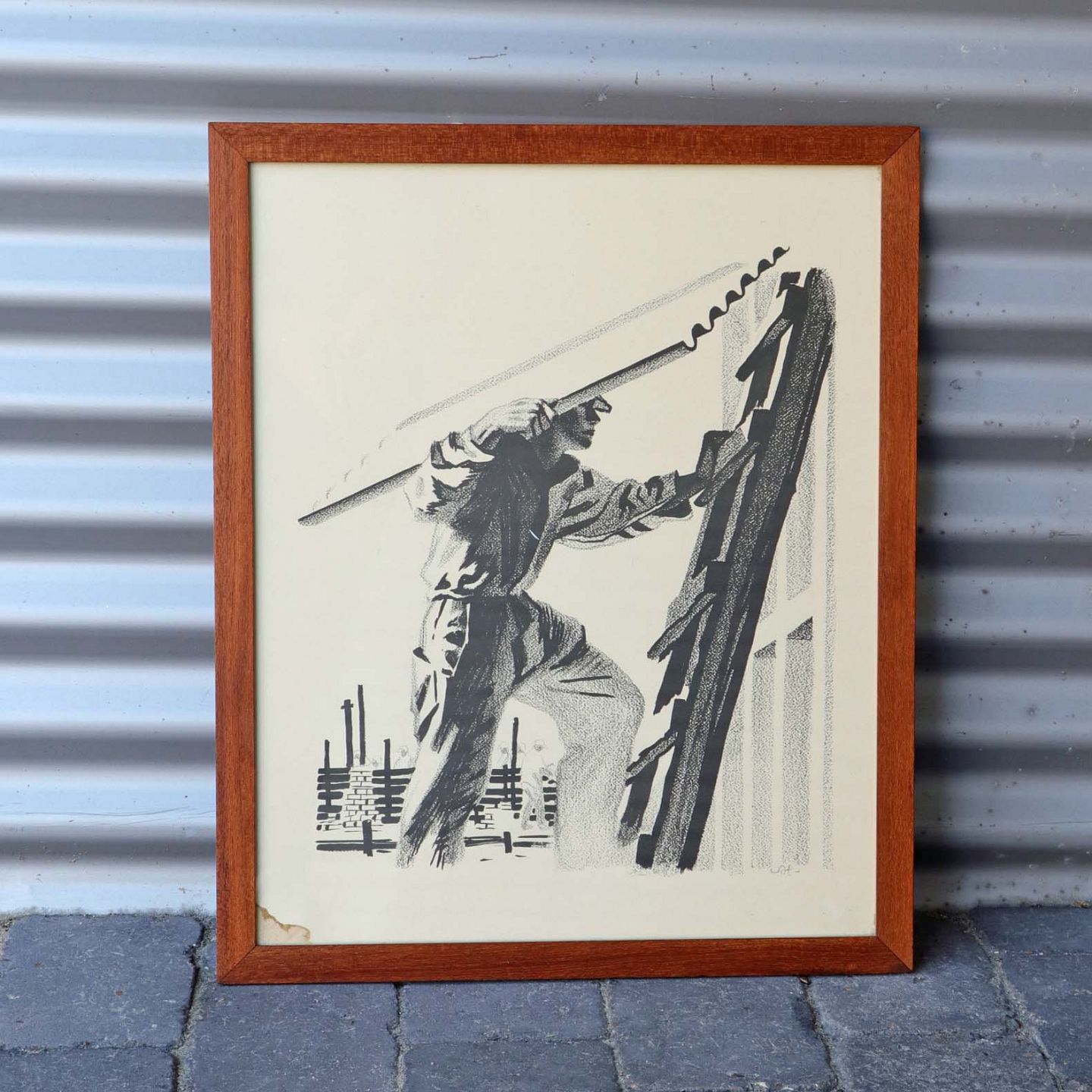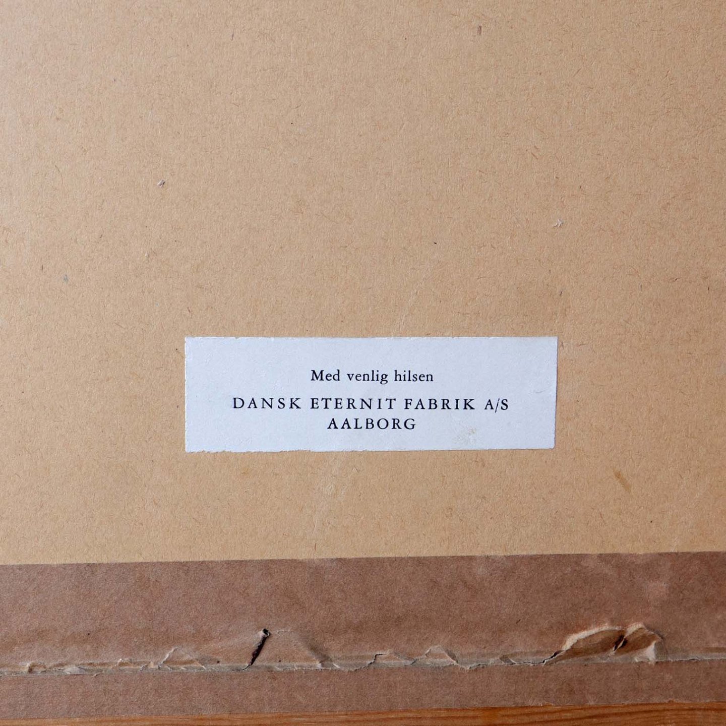 Bagpå sidder et skilt med teksten " Med venlig hilsen, DANSK ETERNIT FABRIK A/S, AALBORG"