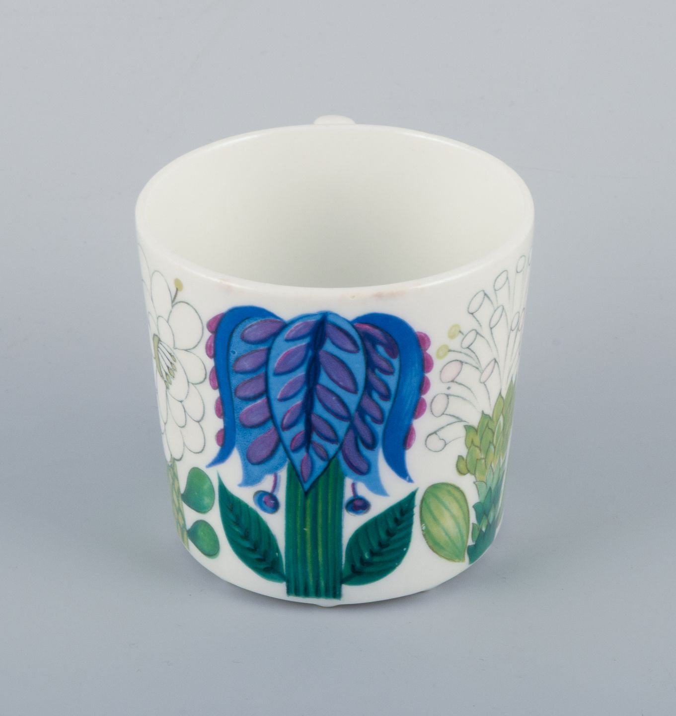 Stig Lindberg for Gustavsberg, Sverige. Sjælden ”Tahiti” kaffekop med tilhørende underkop. Håndmalet med blomstermotiver. Retrostil.