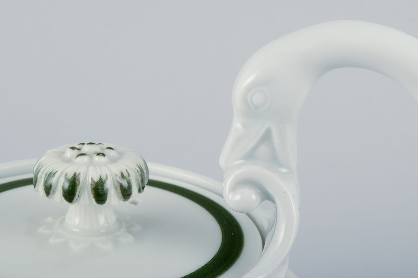 Meissen, Tyskland, Green Ivy Vine, tekande med hank i form af svane. Håndmalet.