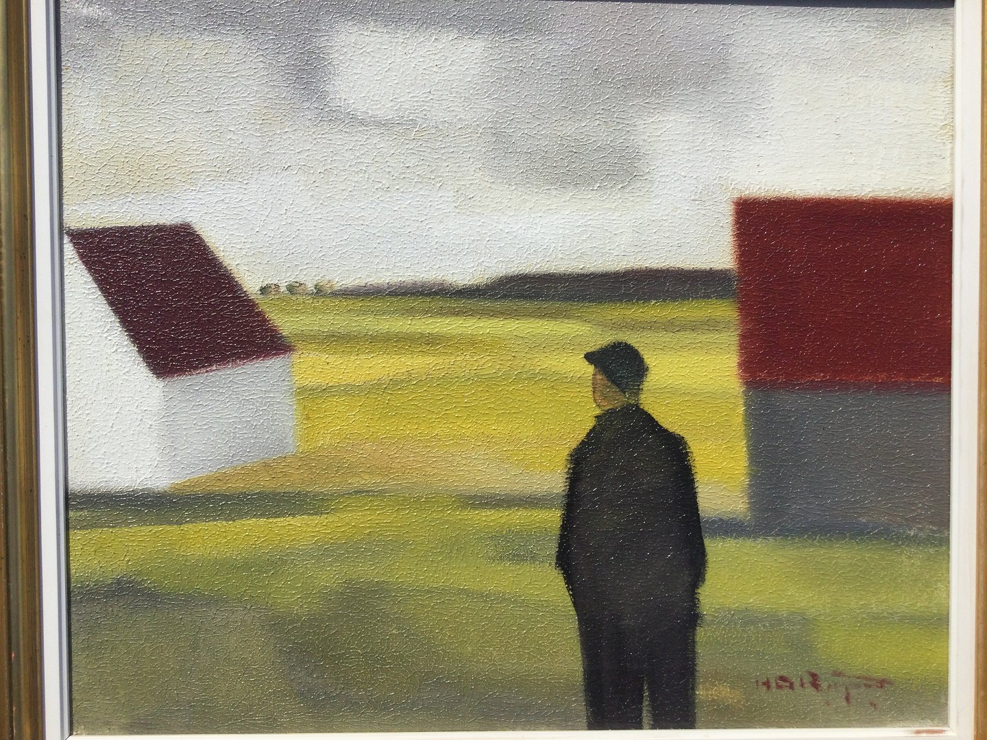 Maleri af Knud Horup - Person ved gårde i landskab.
