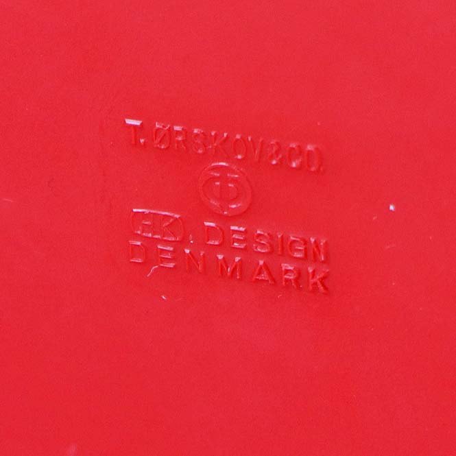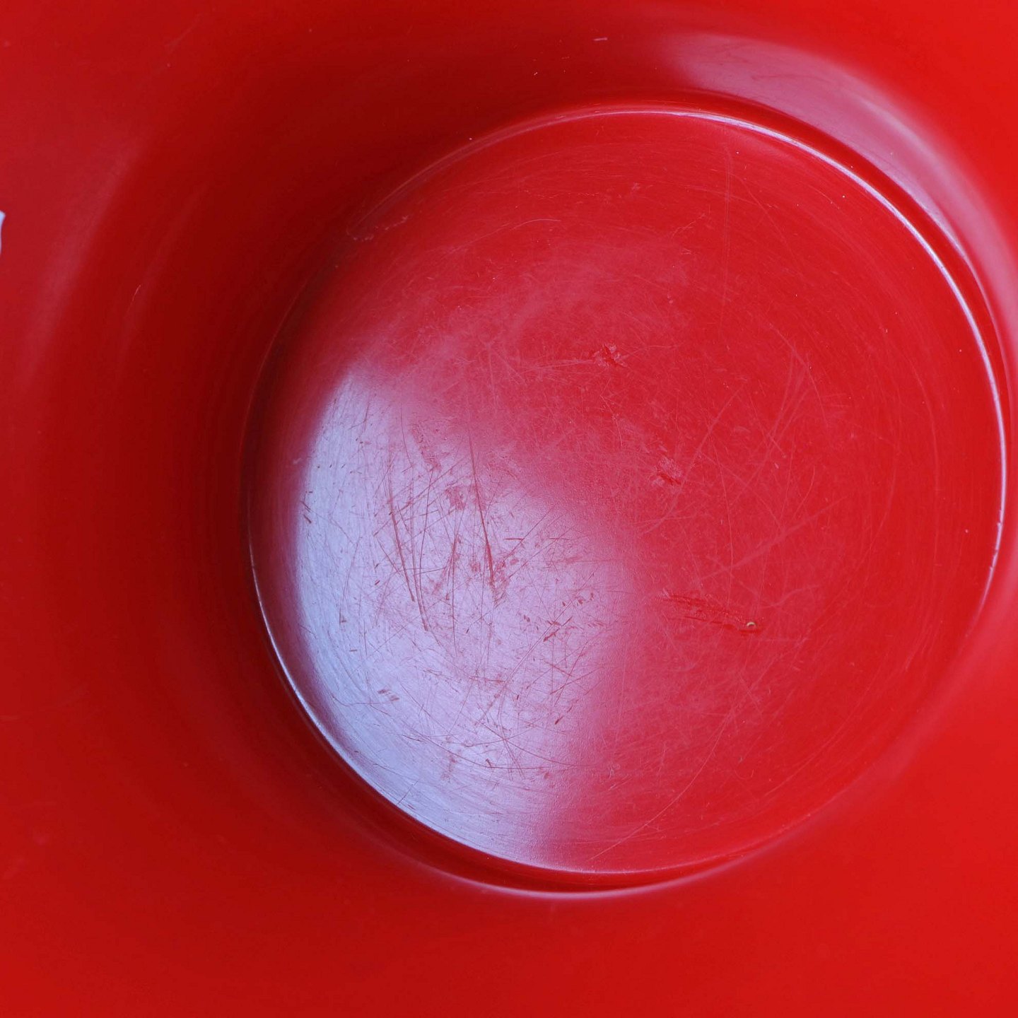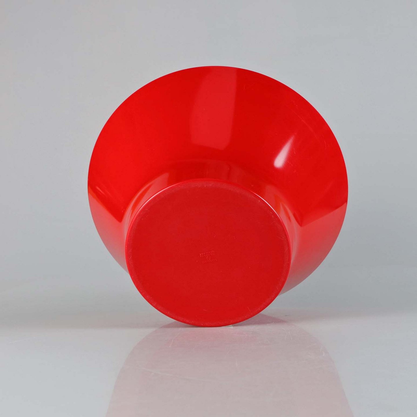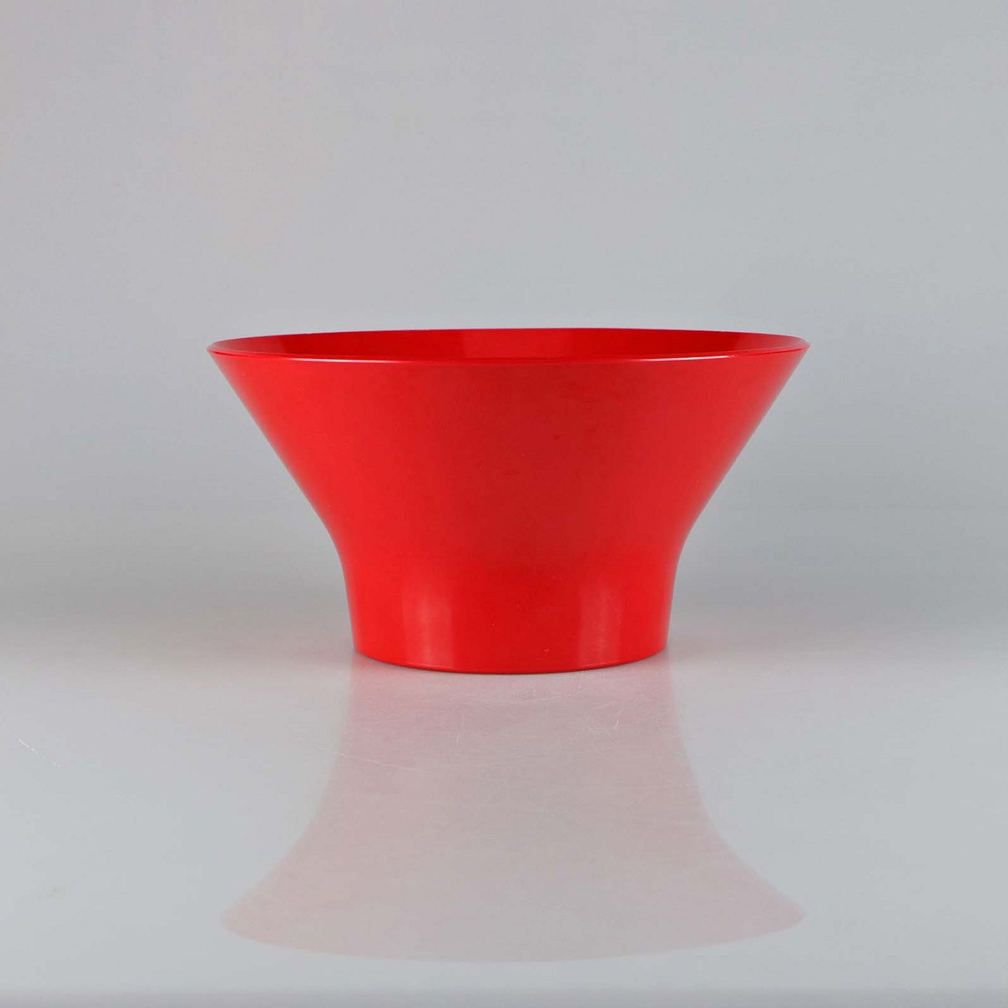Rød skål i hård plast formet som en tragt