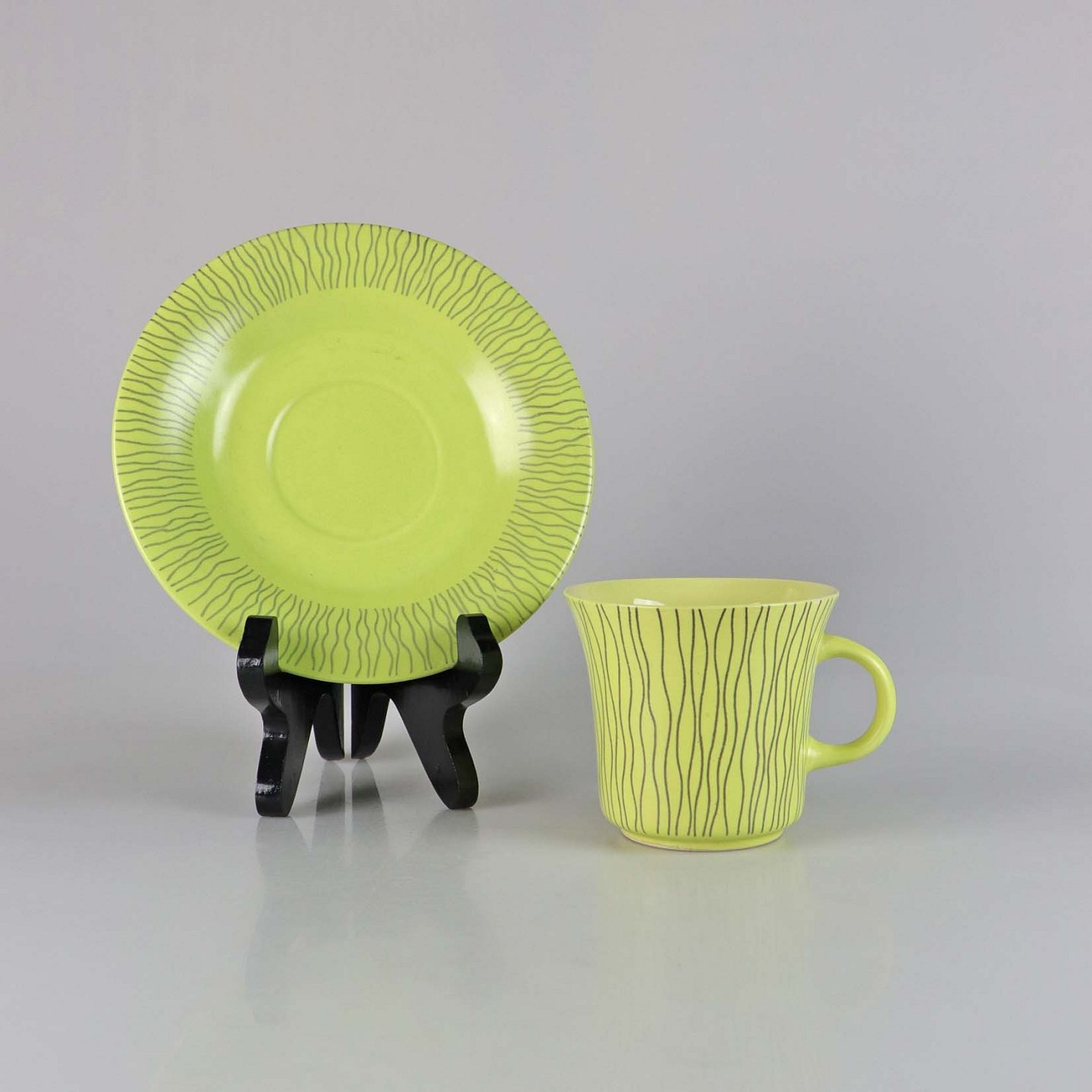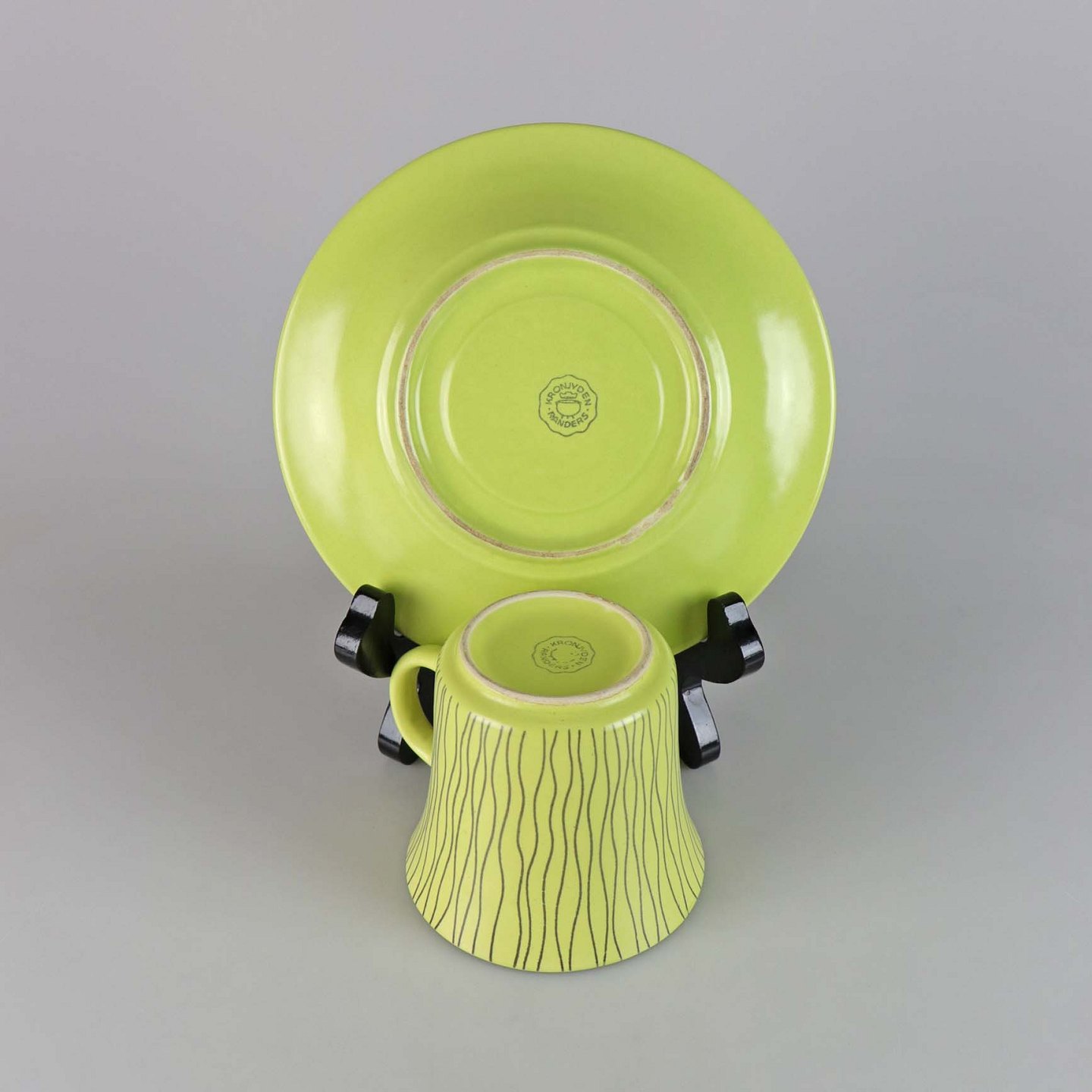 Kop med underkop i fajance fra stellet Mandalay