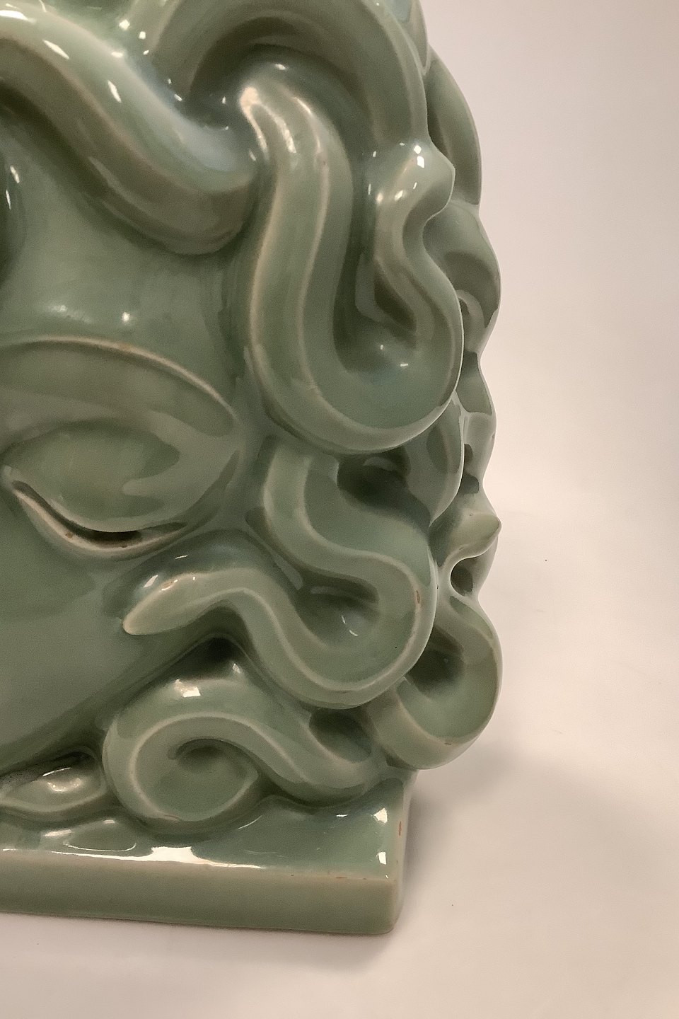Royal Copenhagen Grøn Celadon Maske af Medusa No 2950, Hans Henrik Hansen 1927.