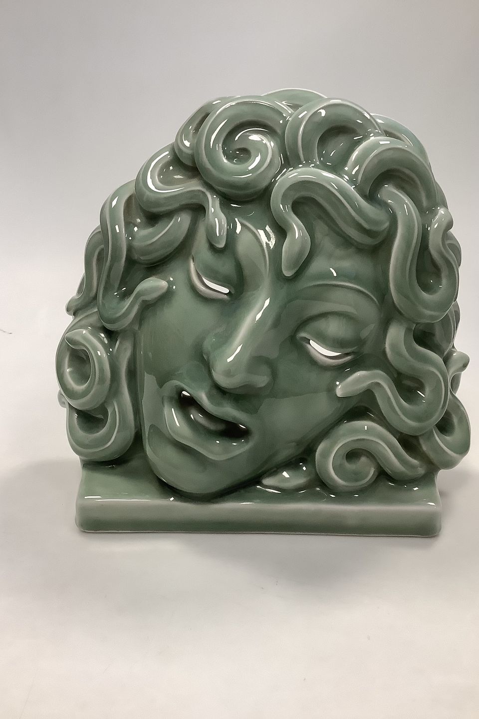 Unika Royal Copenhagen Grøn Celadon Maske af Medusa No 2950, Hans Henrik Hansen 1927.