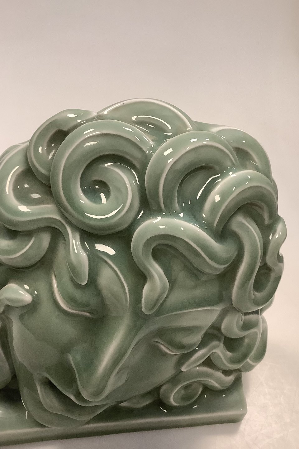 Royal Copenhagen Grøn Celadon Maske af Medusa No 2950, Unika Royal Copenhagen Grøn Celadon Maske af Medusa No 2950, Hans Henrik Hansen 1927.