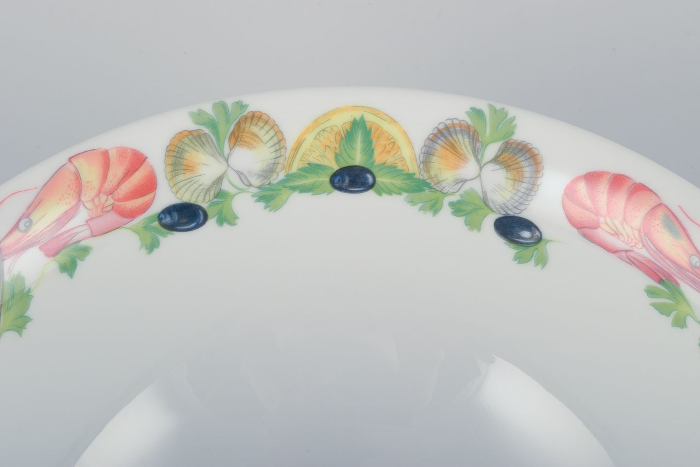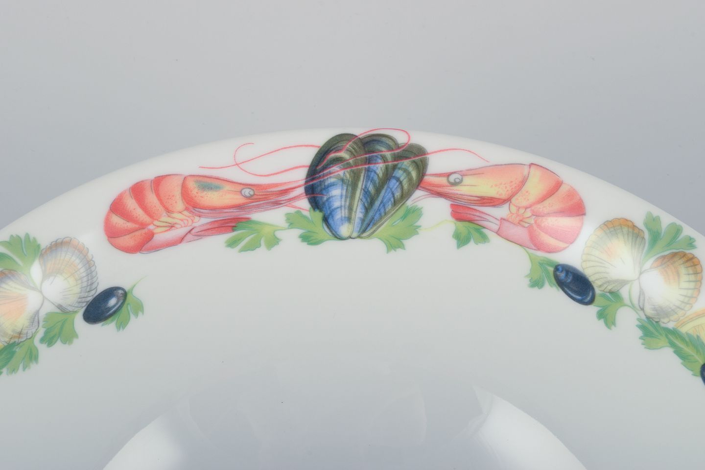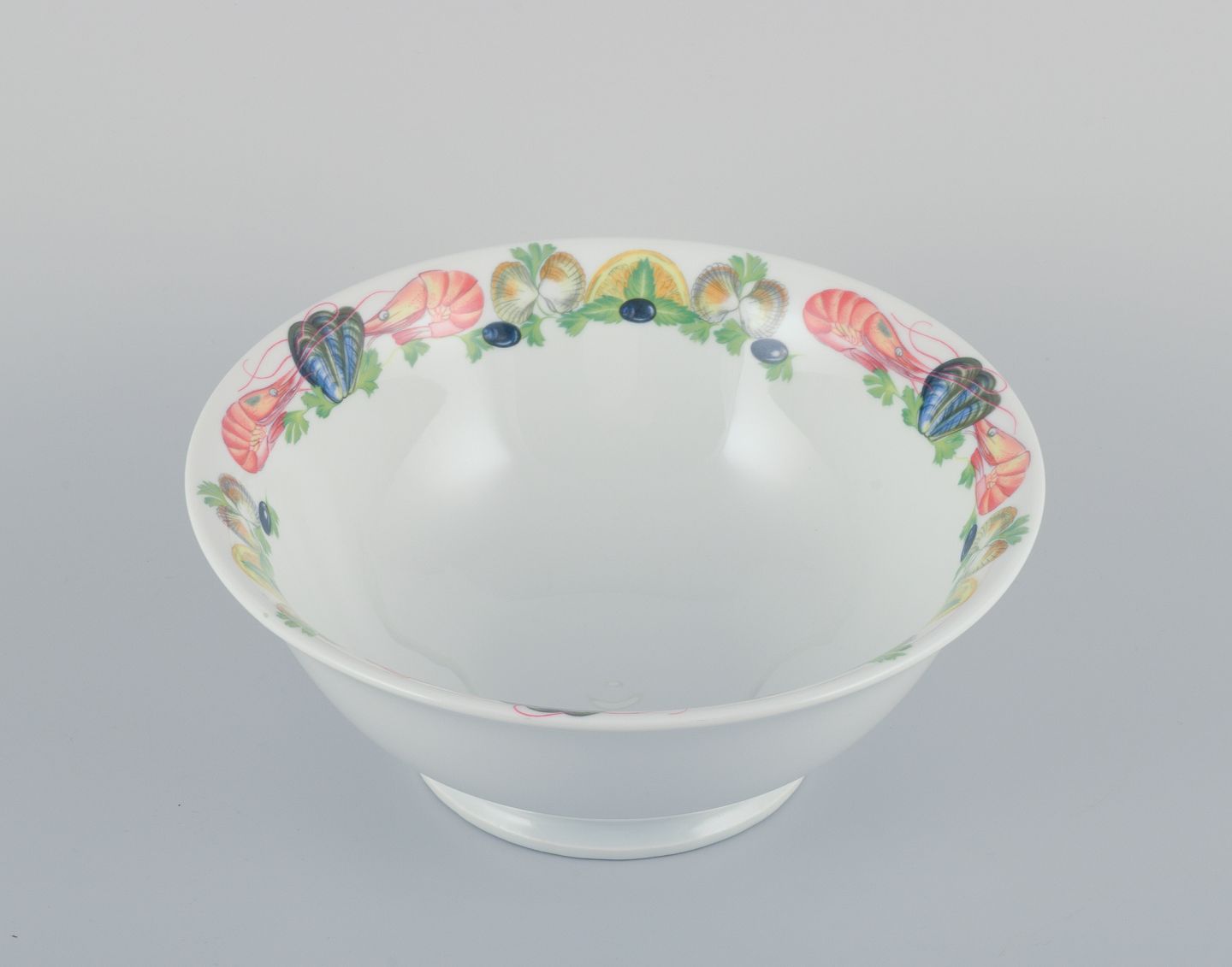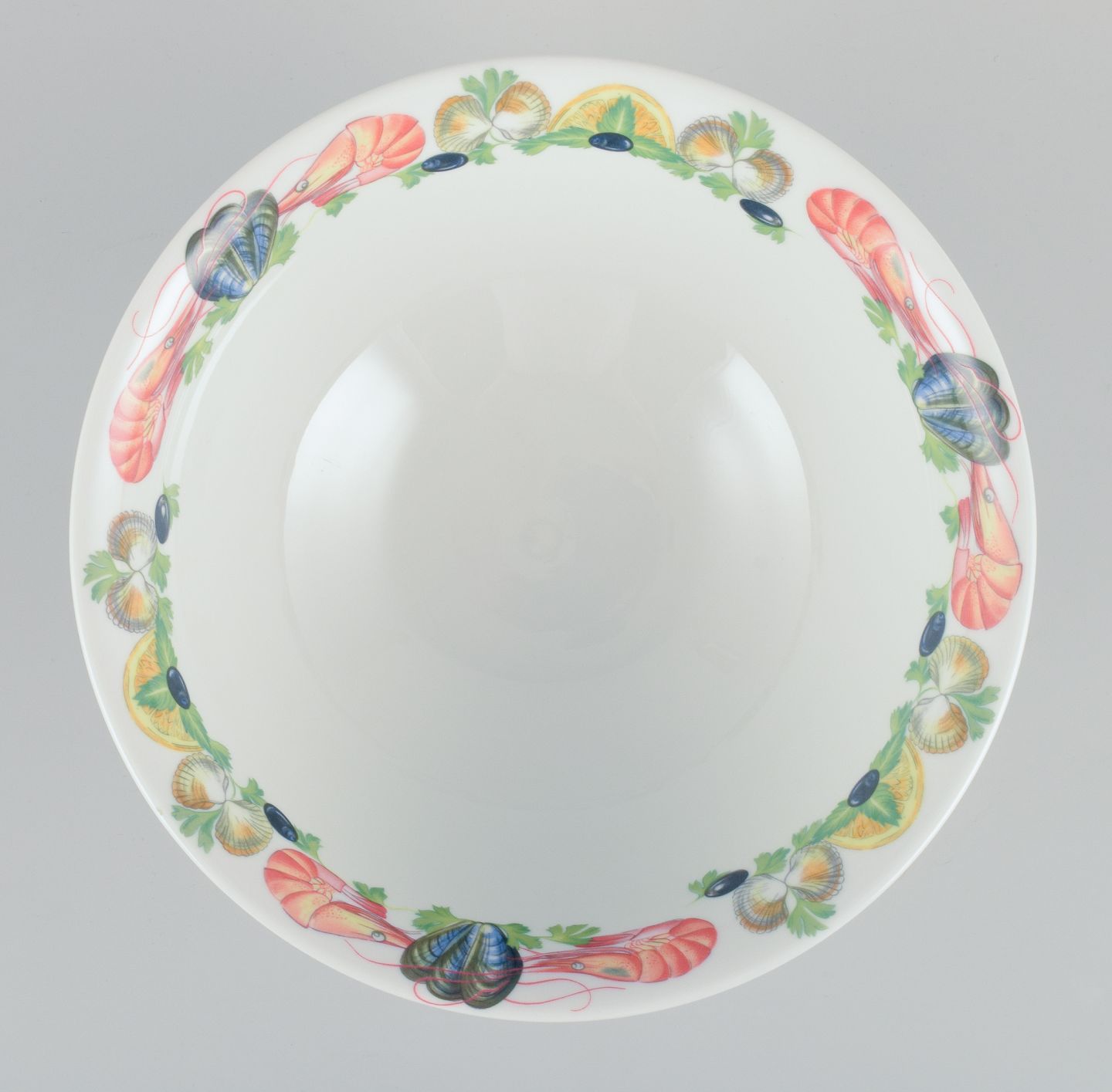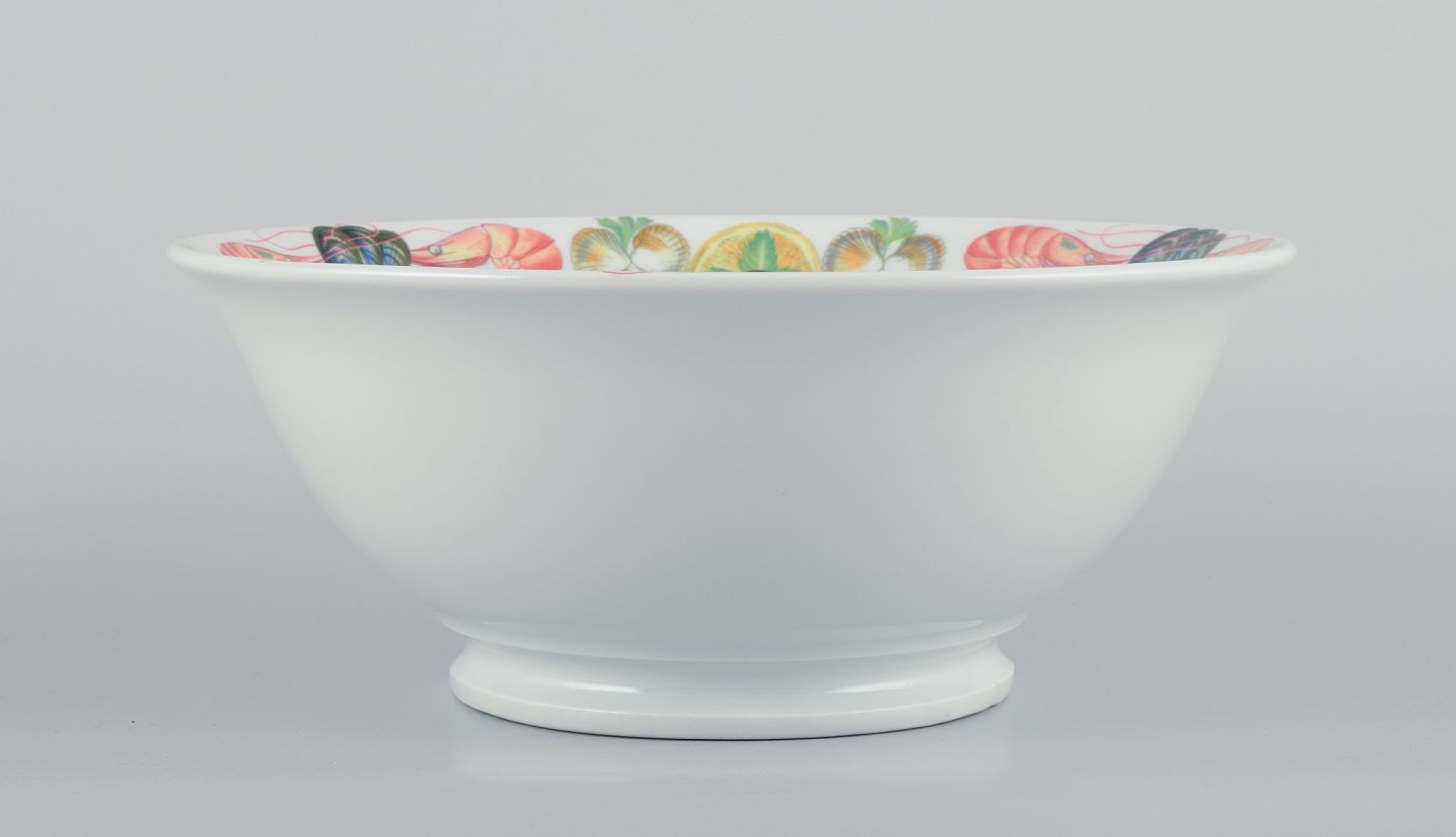 Pillivuyt, Frankrig. Stor porcelænsskål med motiv af skaldyr.
