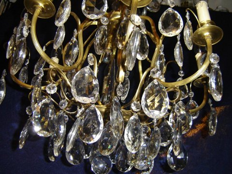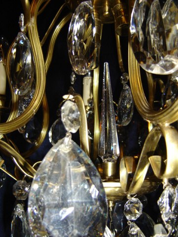 Stamme i messing med 8 lys arme og mange prismer