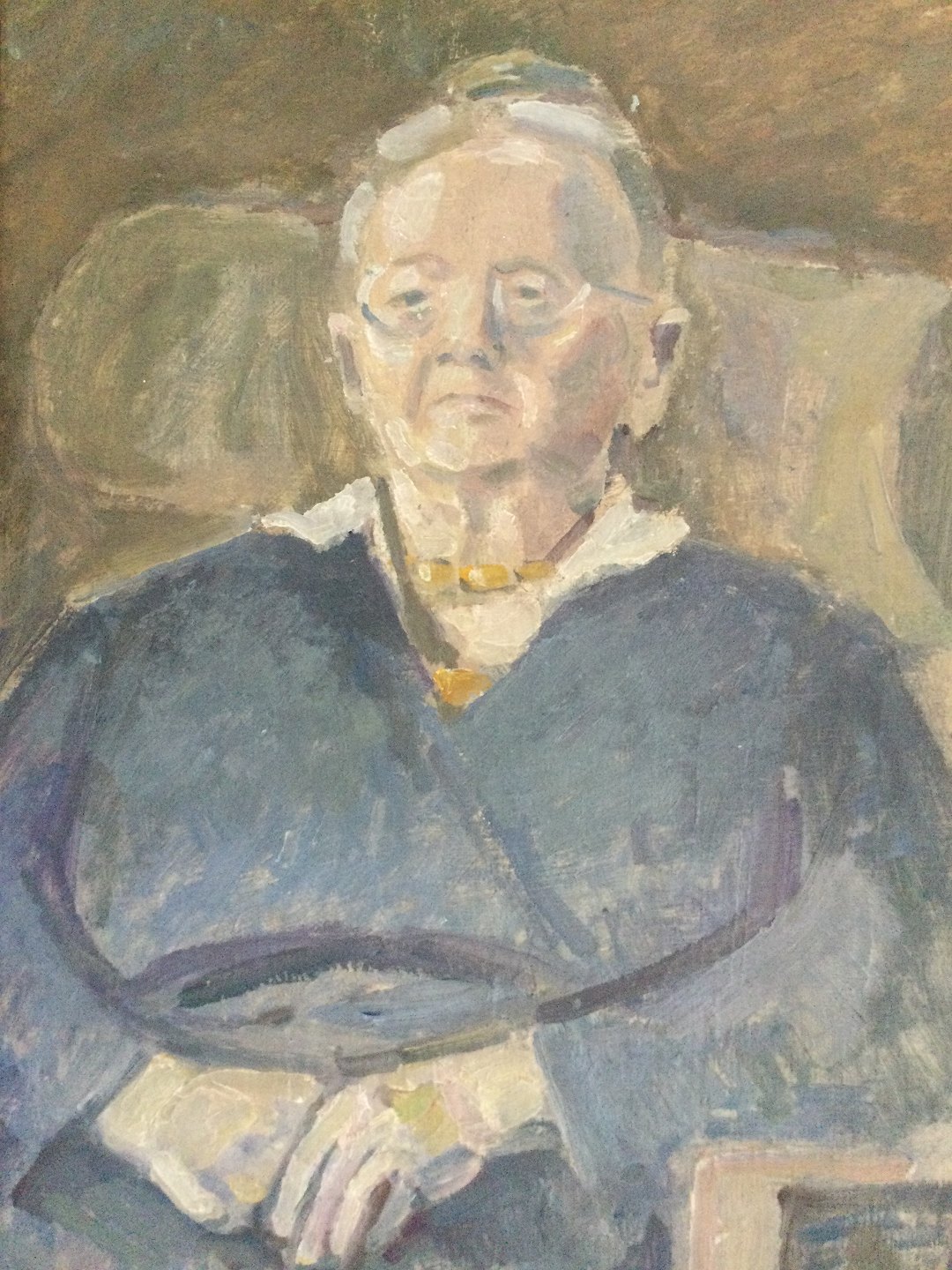 Maleri af Jakob Agersnap 1945 - Siddende kvide i interiør.