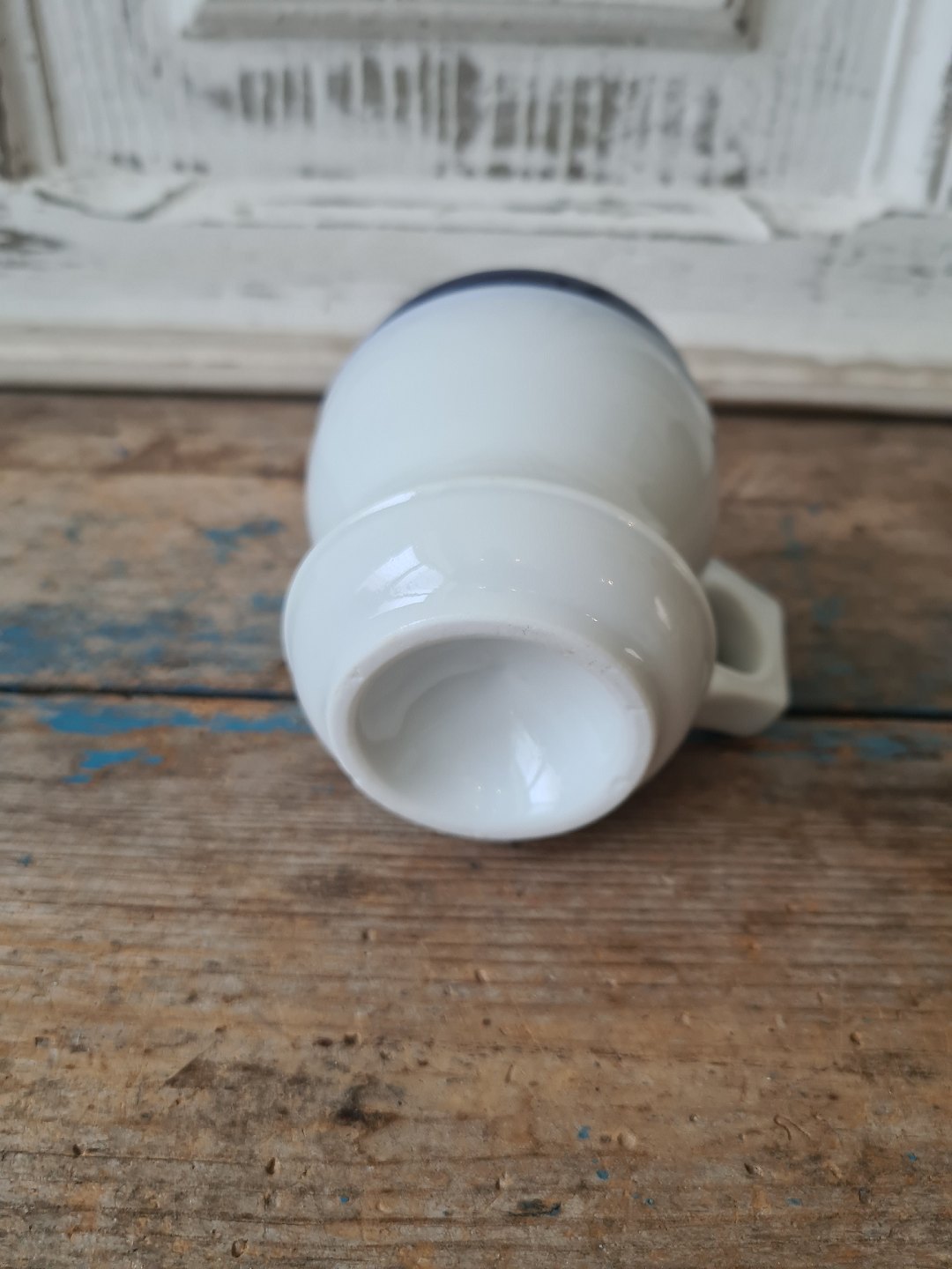 Franske café brûlot kop i kraftigt jern porcelæn dekoreret med blå striber