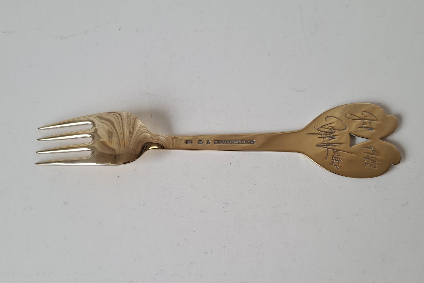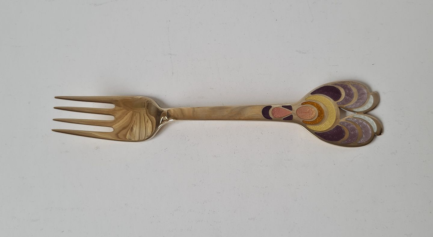 A.Michelsen julegaffel i forgyldt sterlingsølv med emalje 1972