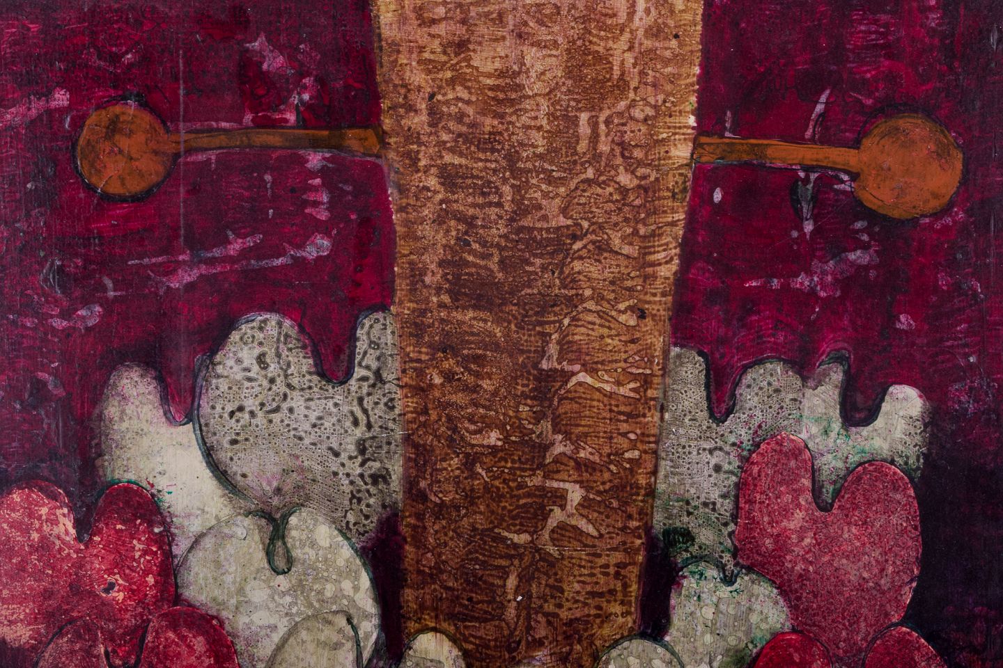 Torsten Hult, svensk kunstner, olie på plade. Maleri i abstrakt stil.