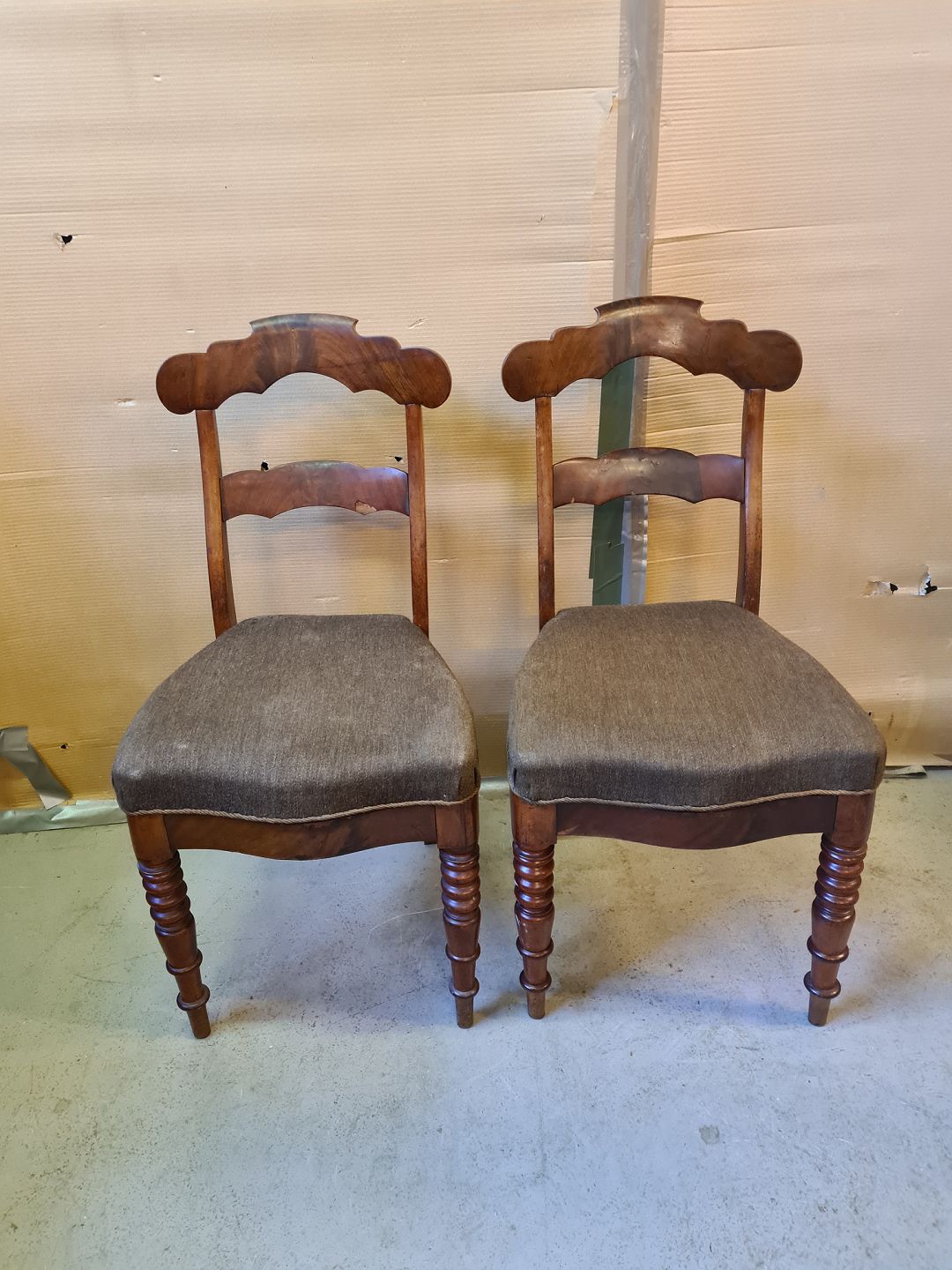 2 Salonstole i mahogni og bøgetræ, fra 1900erne.