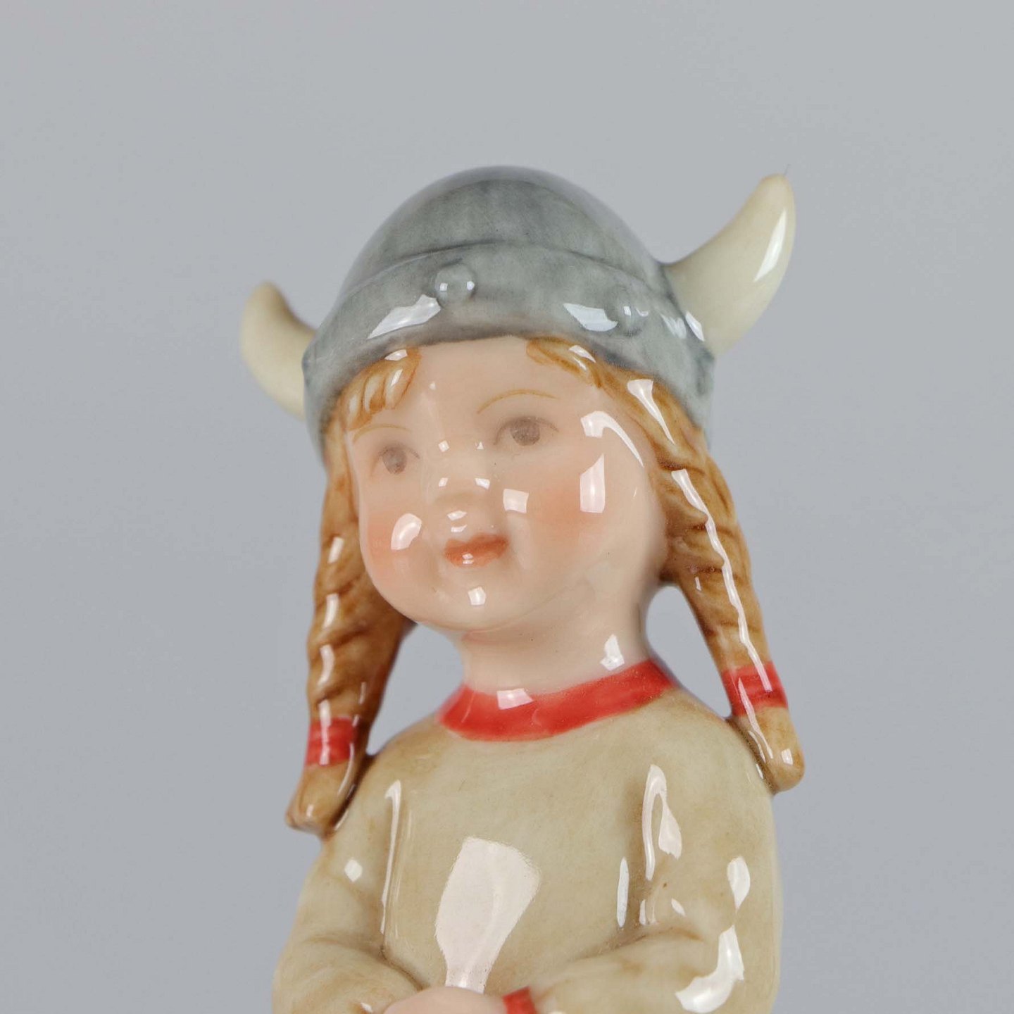 Årets Viking 2004 i porcelæn fra serien Mini Collection Viking. Pige med sværd og gås. No 129 Vikingenavn: Thora.