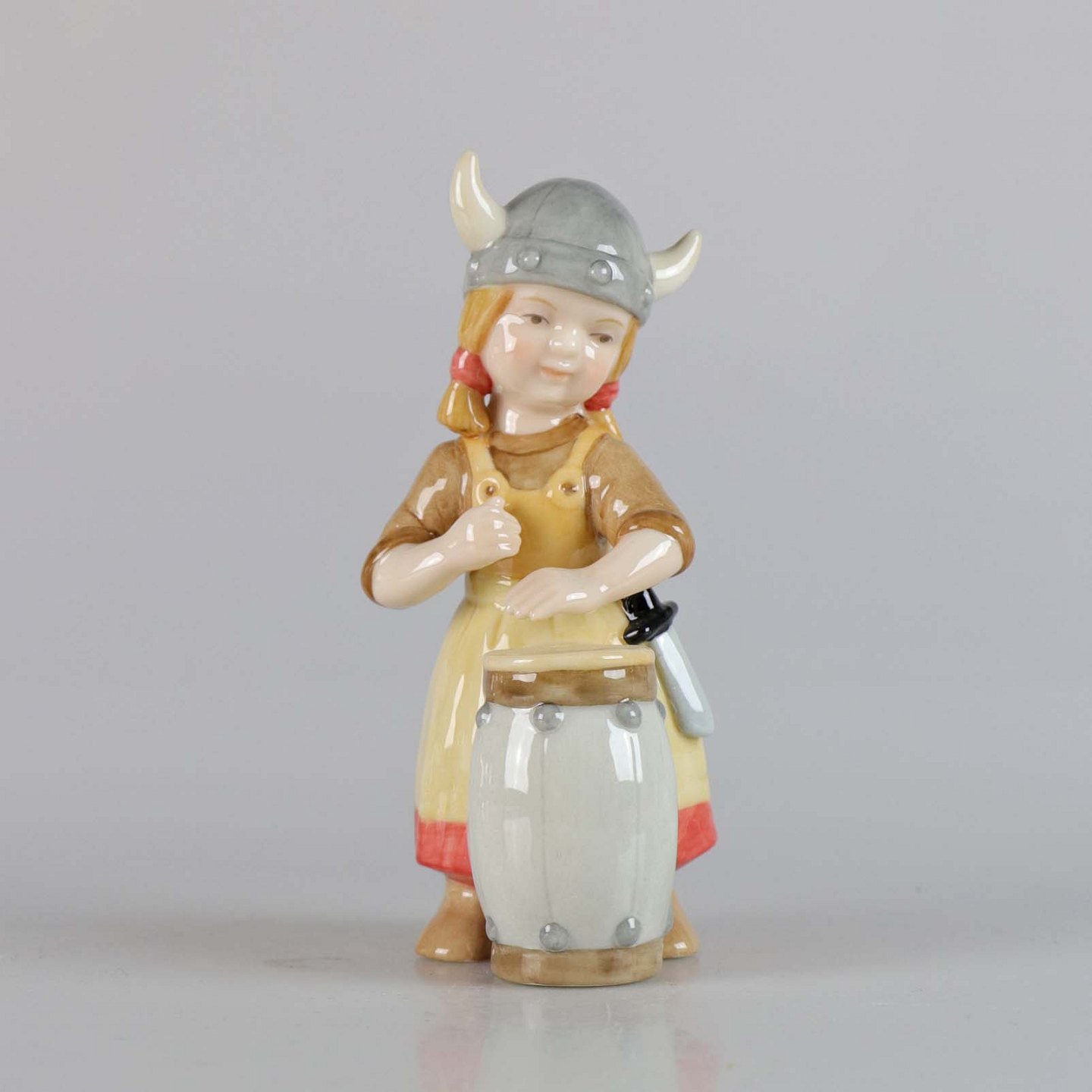 Text available in Danish: Årets Viking 2005 i porcelæn fra serien Mini Collection Viking. Pige med sværd og tromme. No 163 Vikingenavn: Nanna.