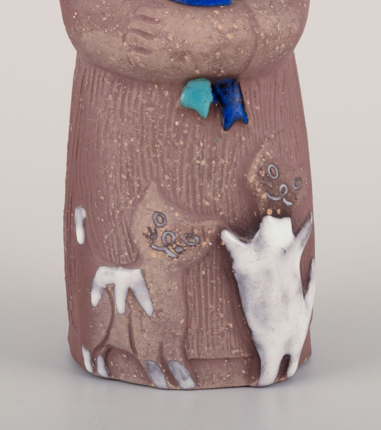 Mari Simmulson for Upsala Ekeby, keramikfigur af pige med to katte.
