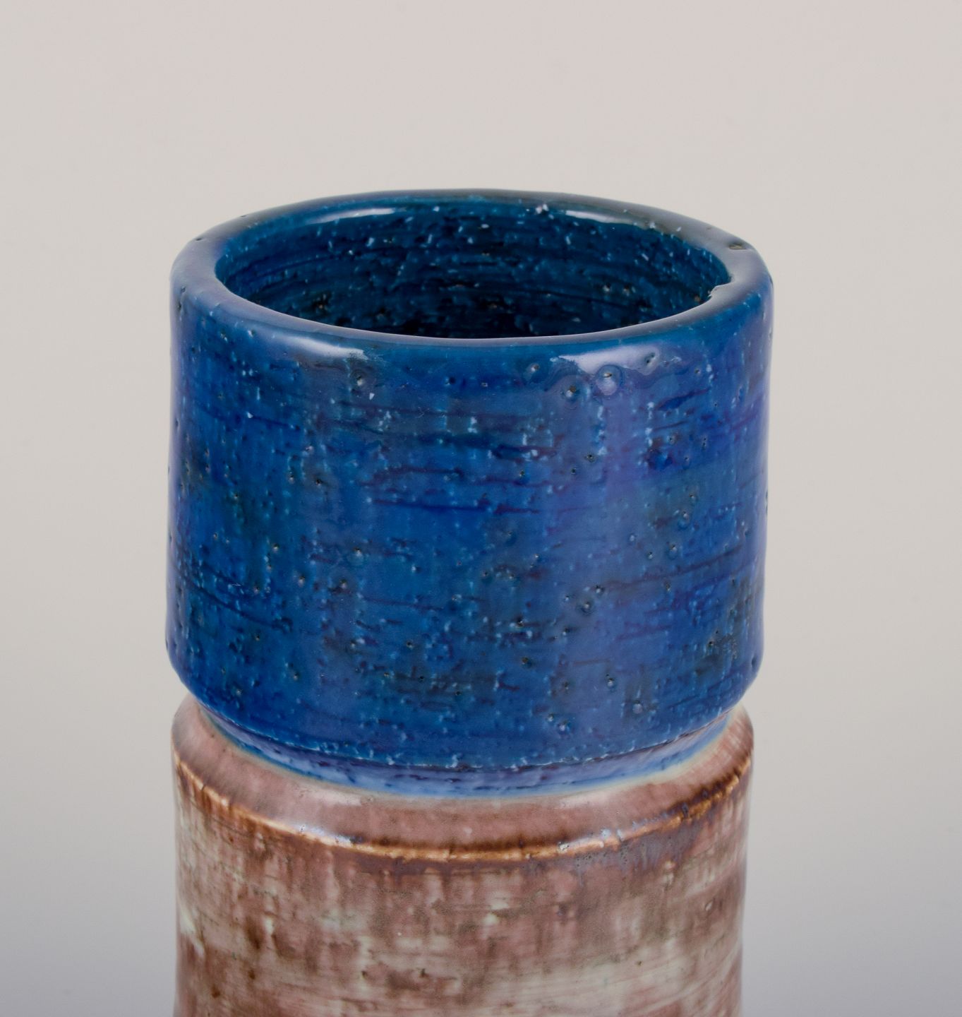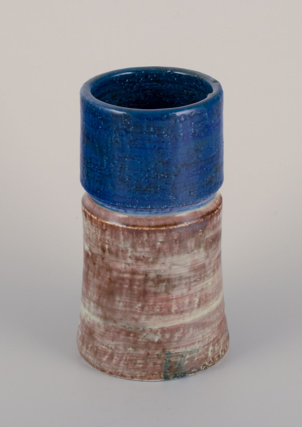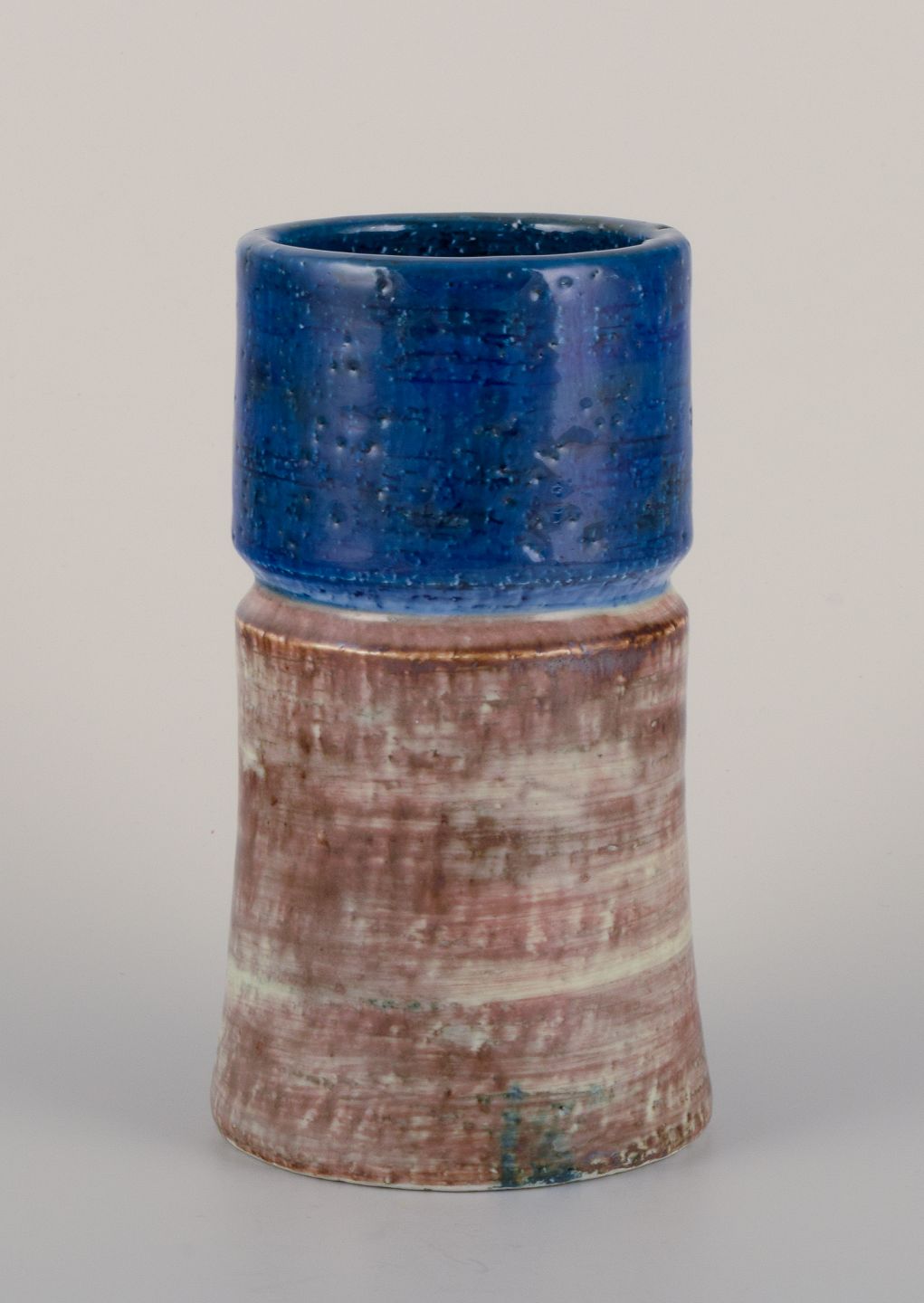 Sylvia Leuchvius for Rörstrand, Sverige. Keramikvase med glasur i blå og sandfarvet nuancer.