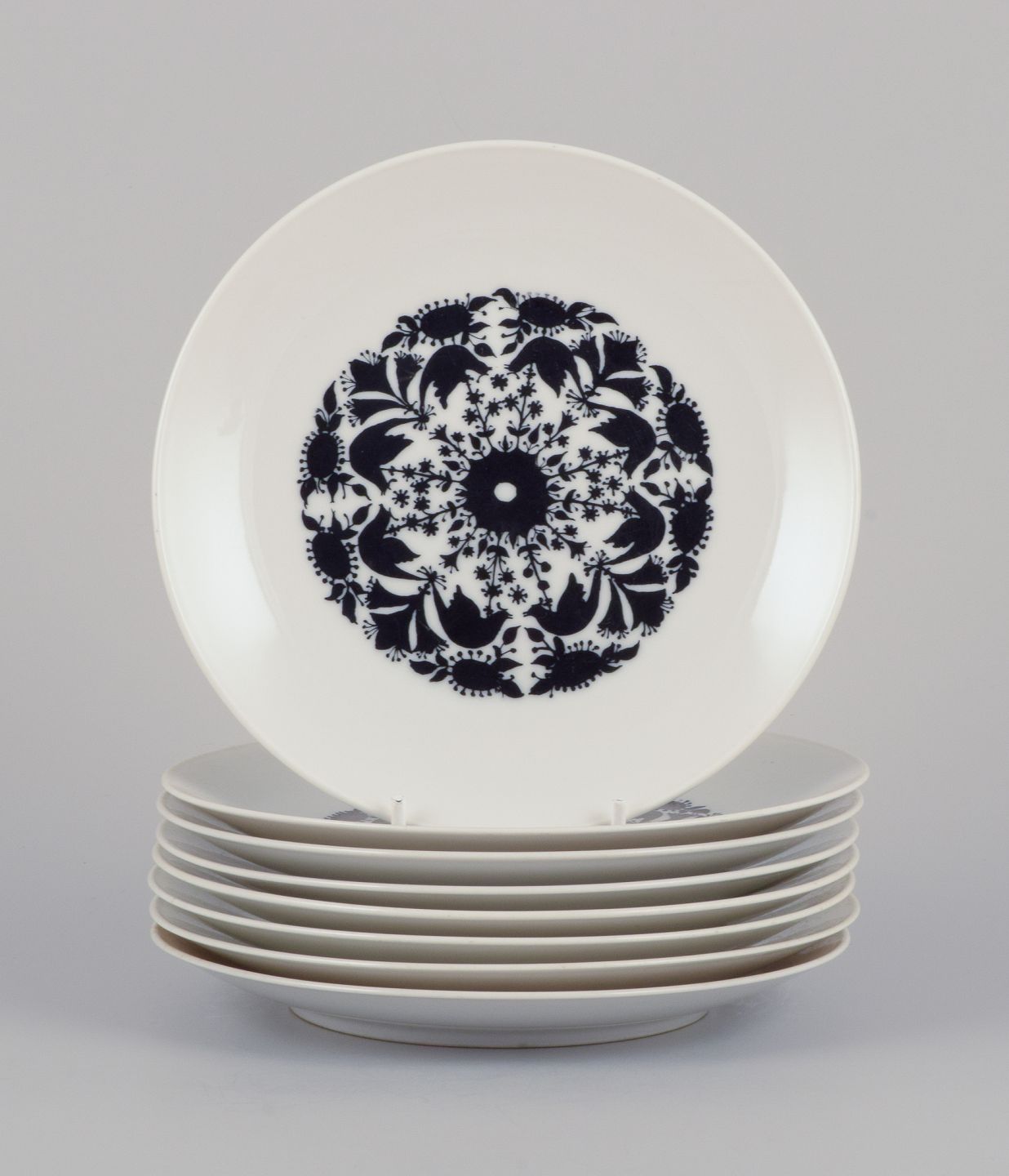 Bjørn Wiinblad for Rosenthal, Tyskland. Et sæt på otte ”Berlin Hilton” tallerkner i porcelæn.