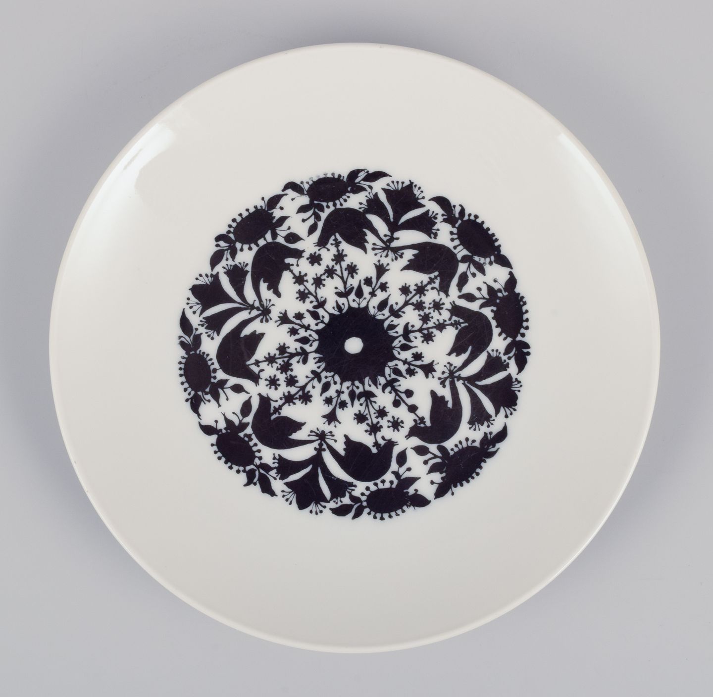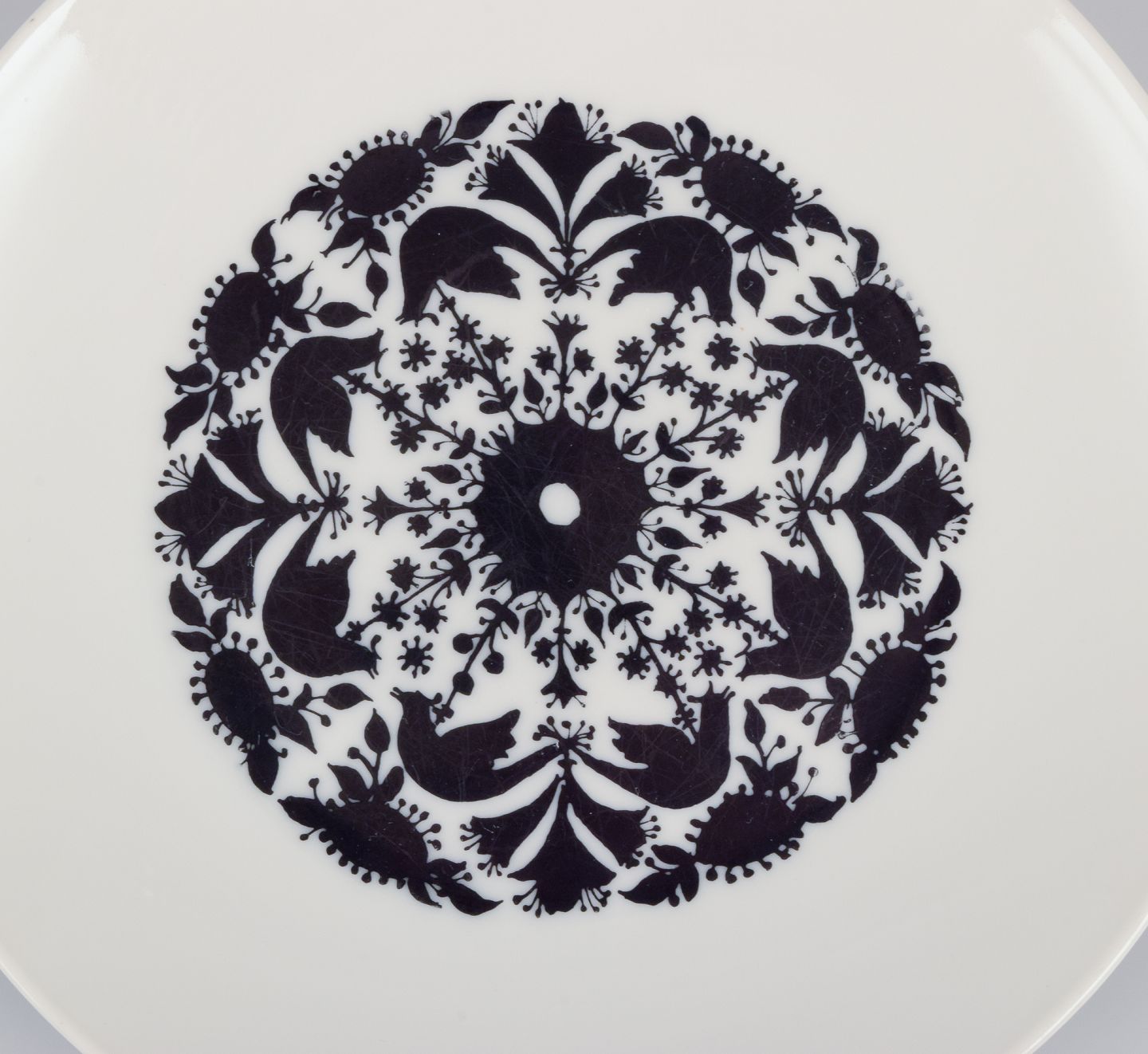 Modelnummer: 4009. Dekoreret med fugle og blomster i sort.