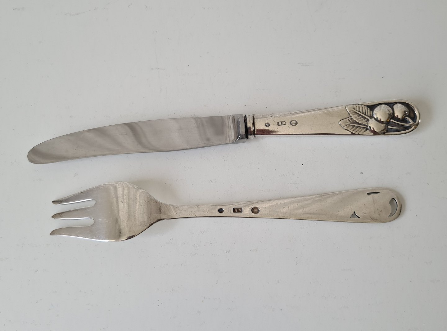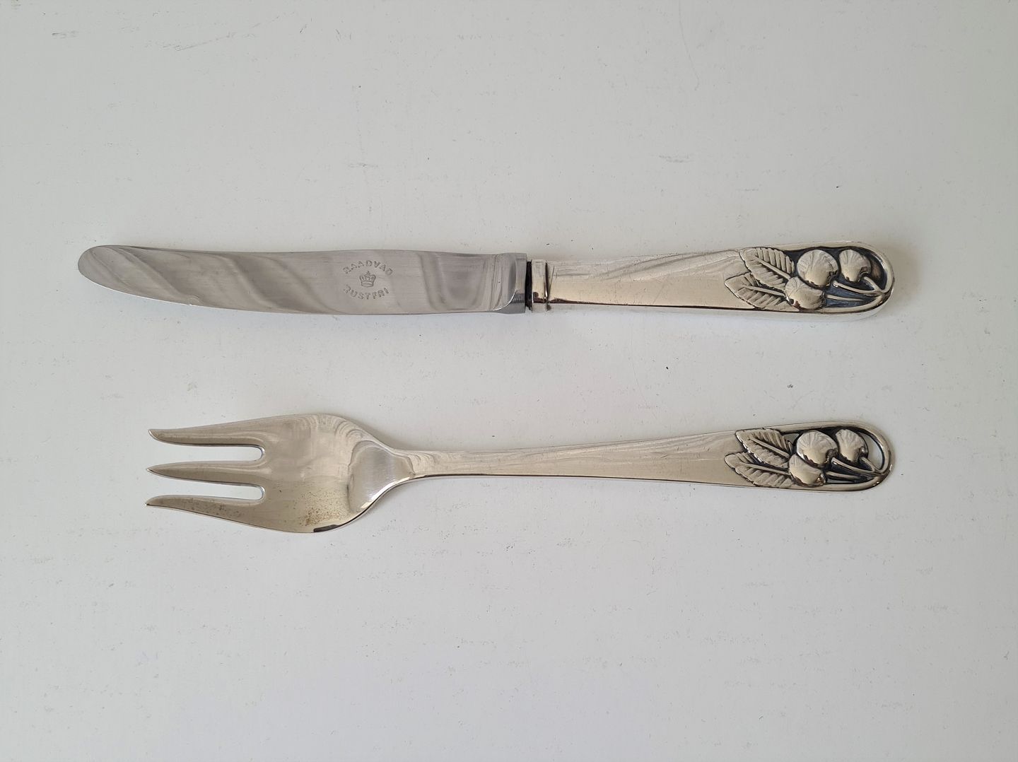 Length on fork 15 cm. Length of the knife 17.2 cm.