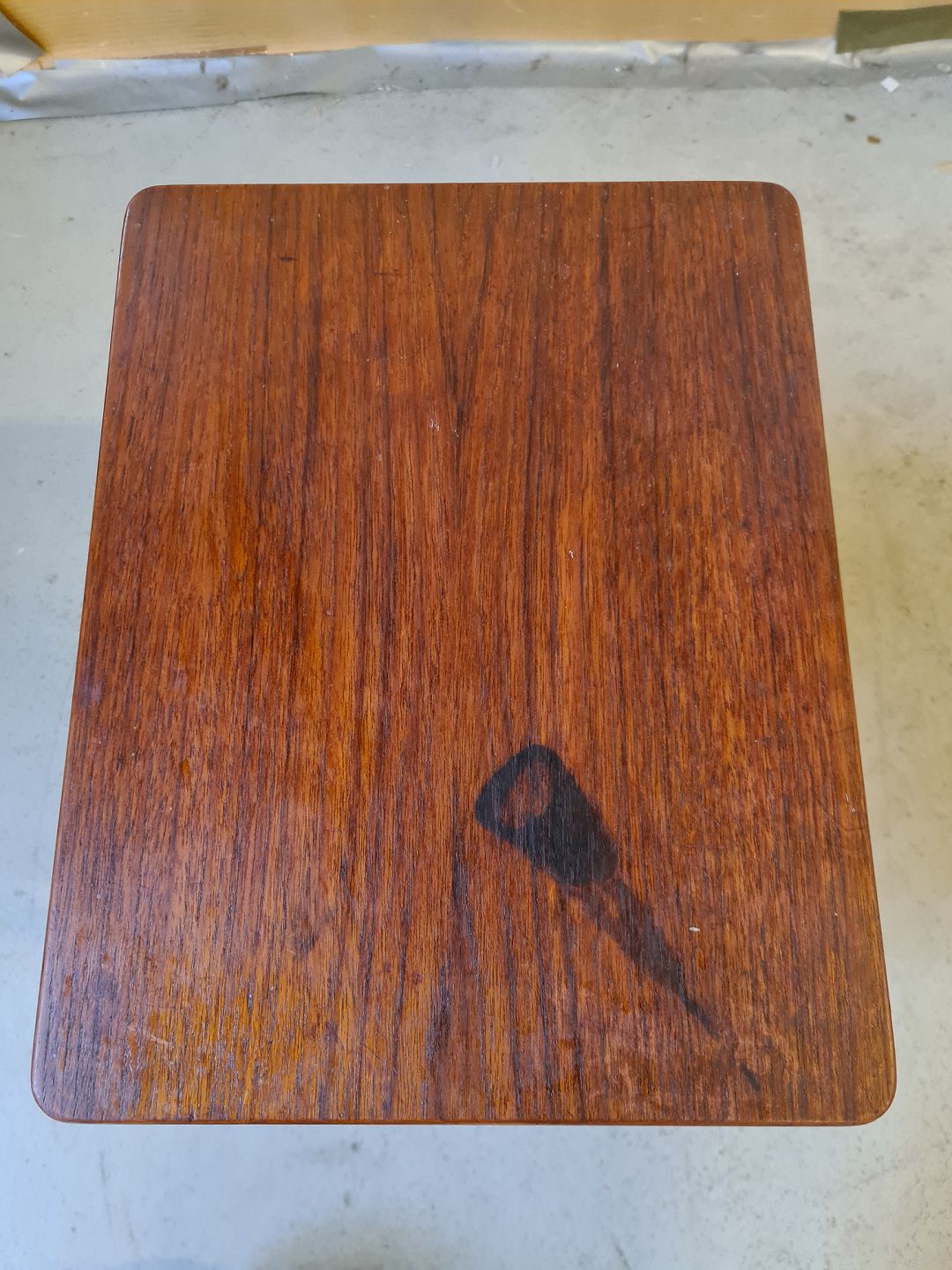 Lille bord i fineret teaktræ, fra 1960erne.