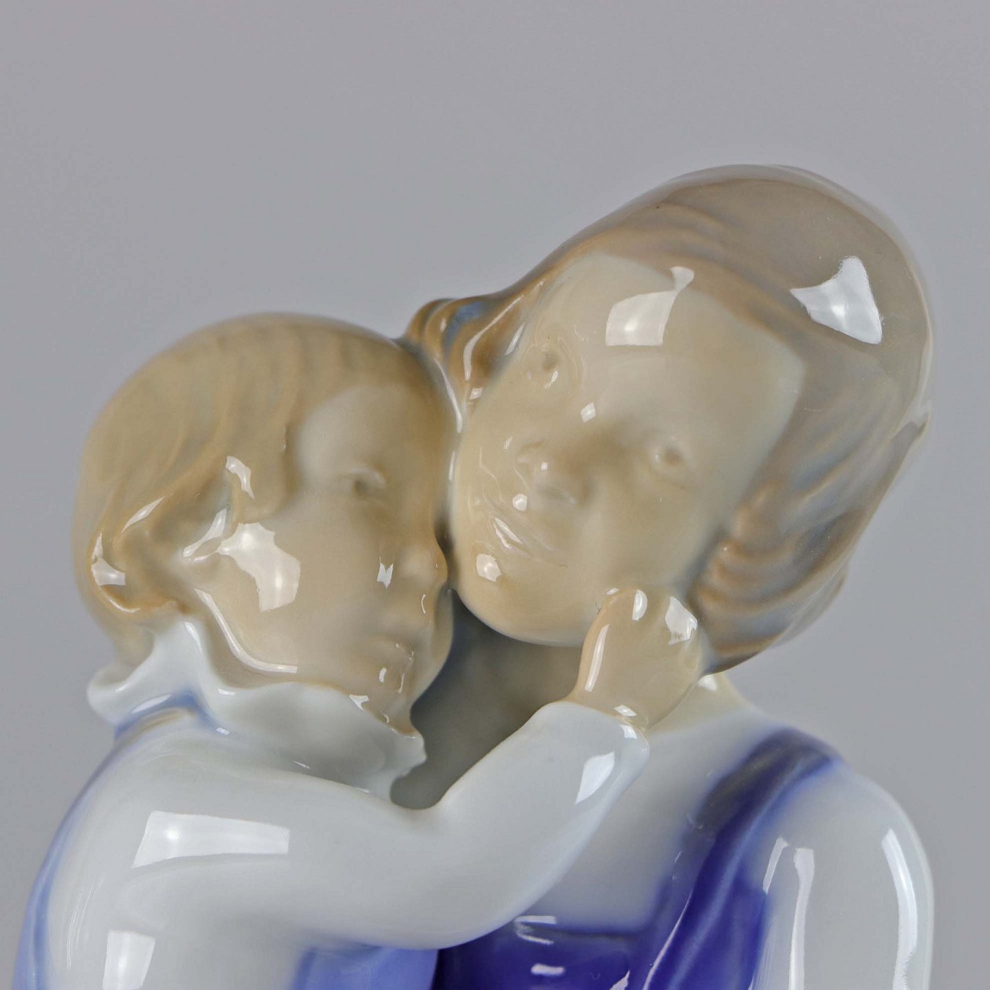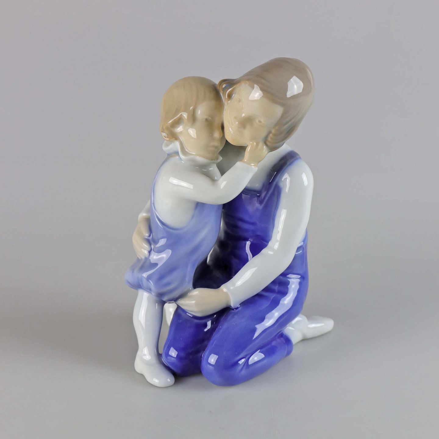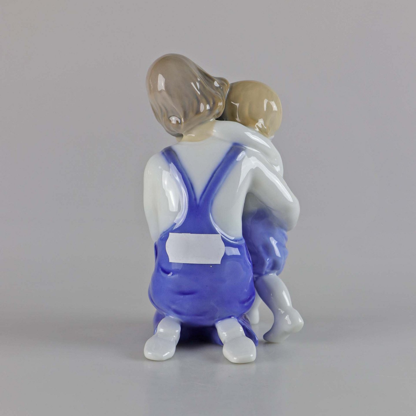 Figur i porcelæn af en ung pige og et barn som krammer. No 2250