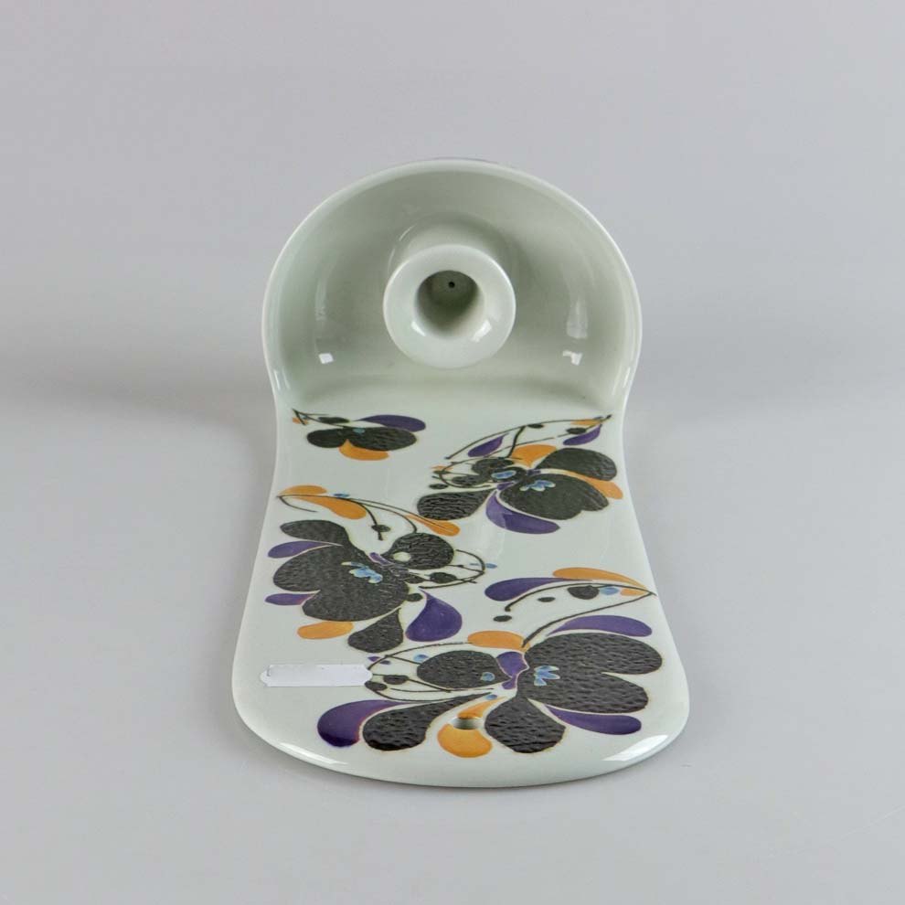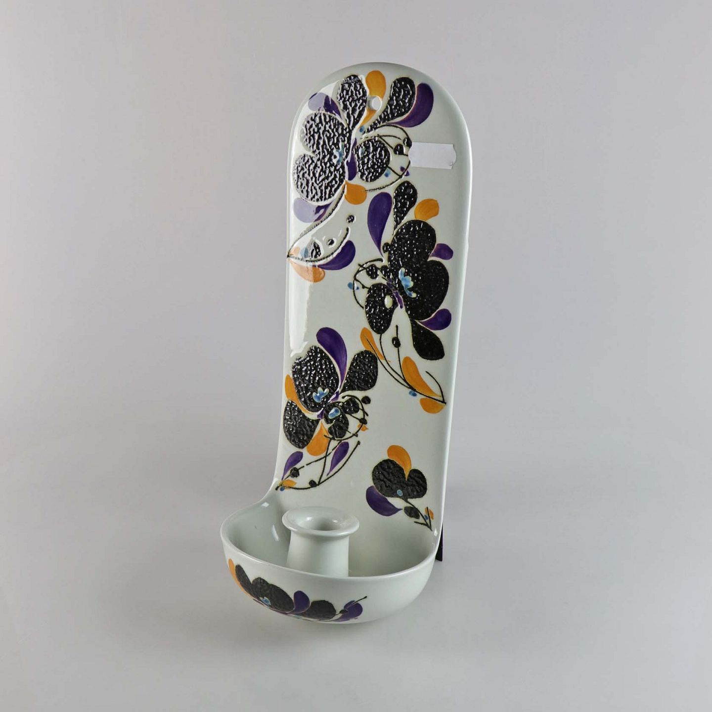 Væghængt lysestage i fajance i lilla, mørke og gyldne farver no 954/3786