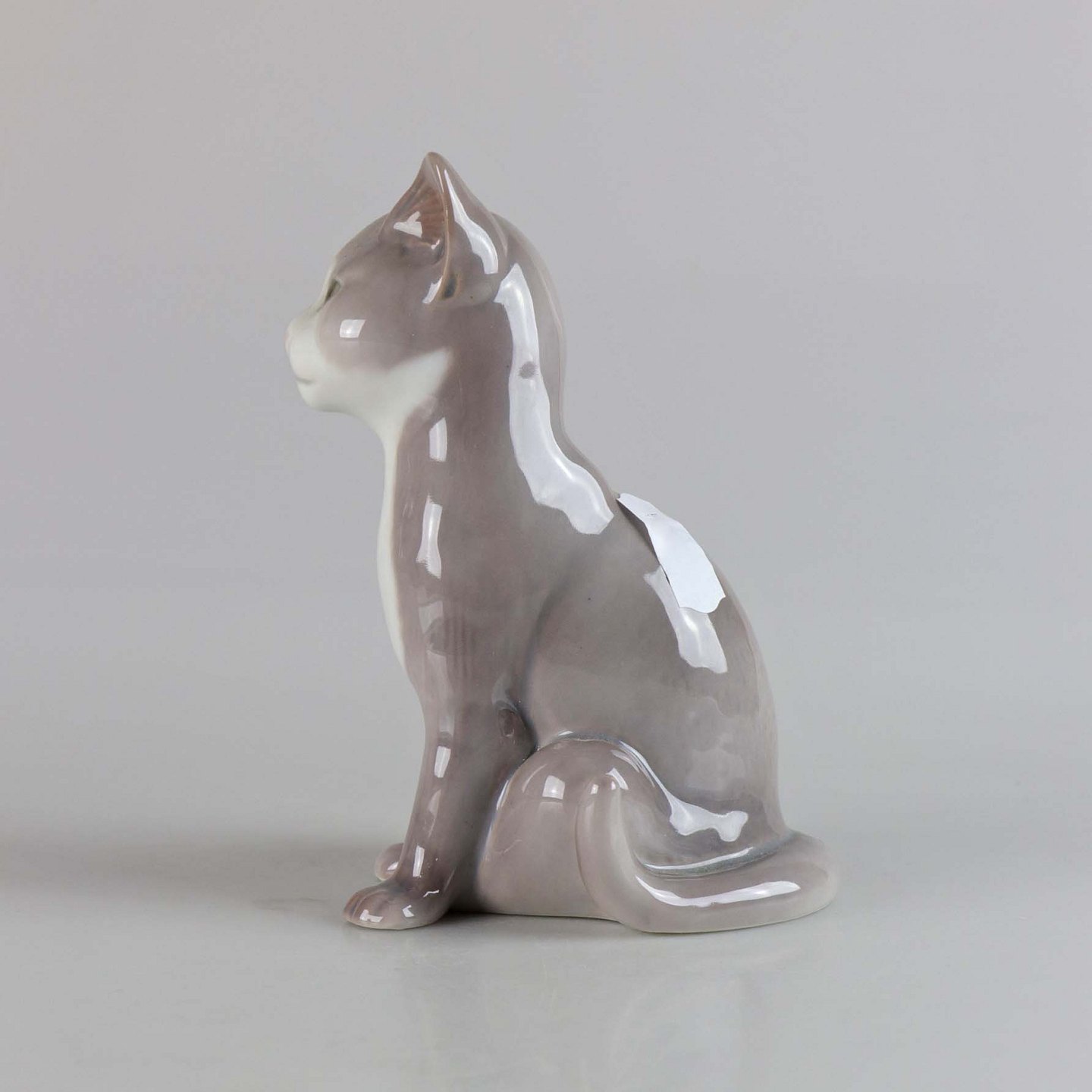 Figur i porcelæn med motiv af en siddende grå kat no 2515