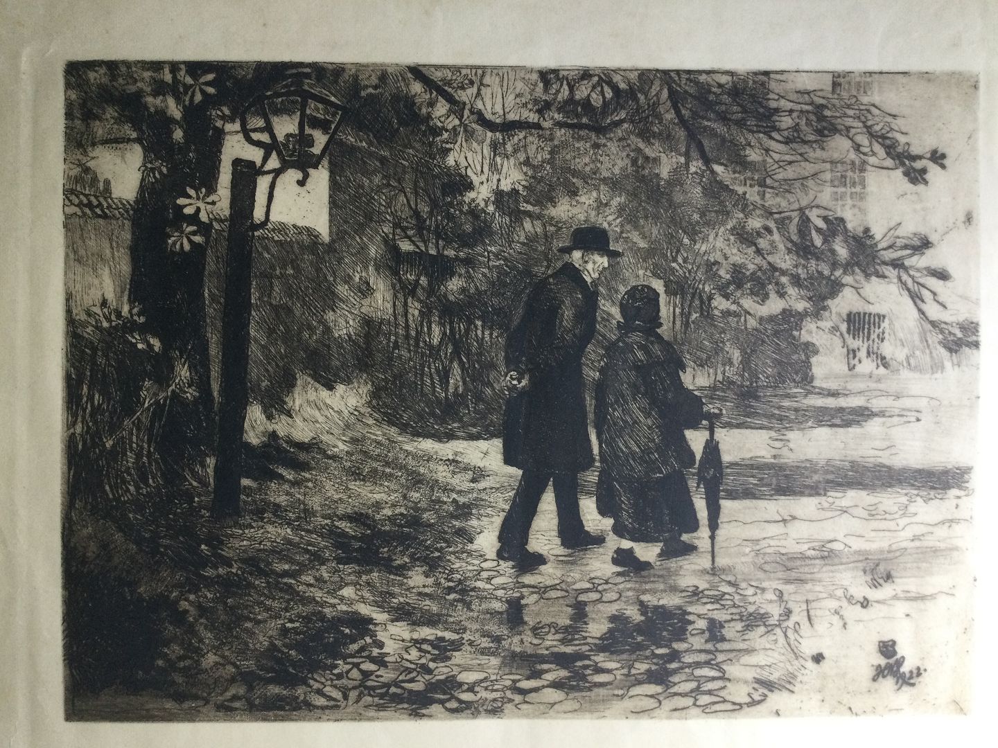 Radering - Hans Nikolaj Hansen - 1922 - Frederik Paludan-Müller og Charite Borch i Fredensborg.