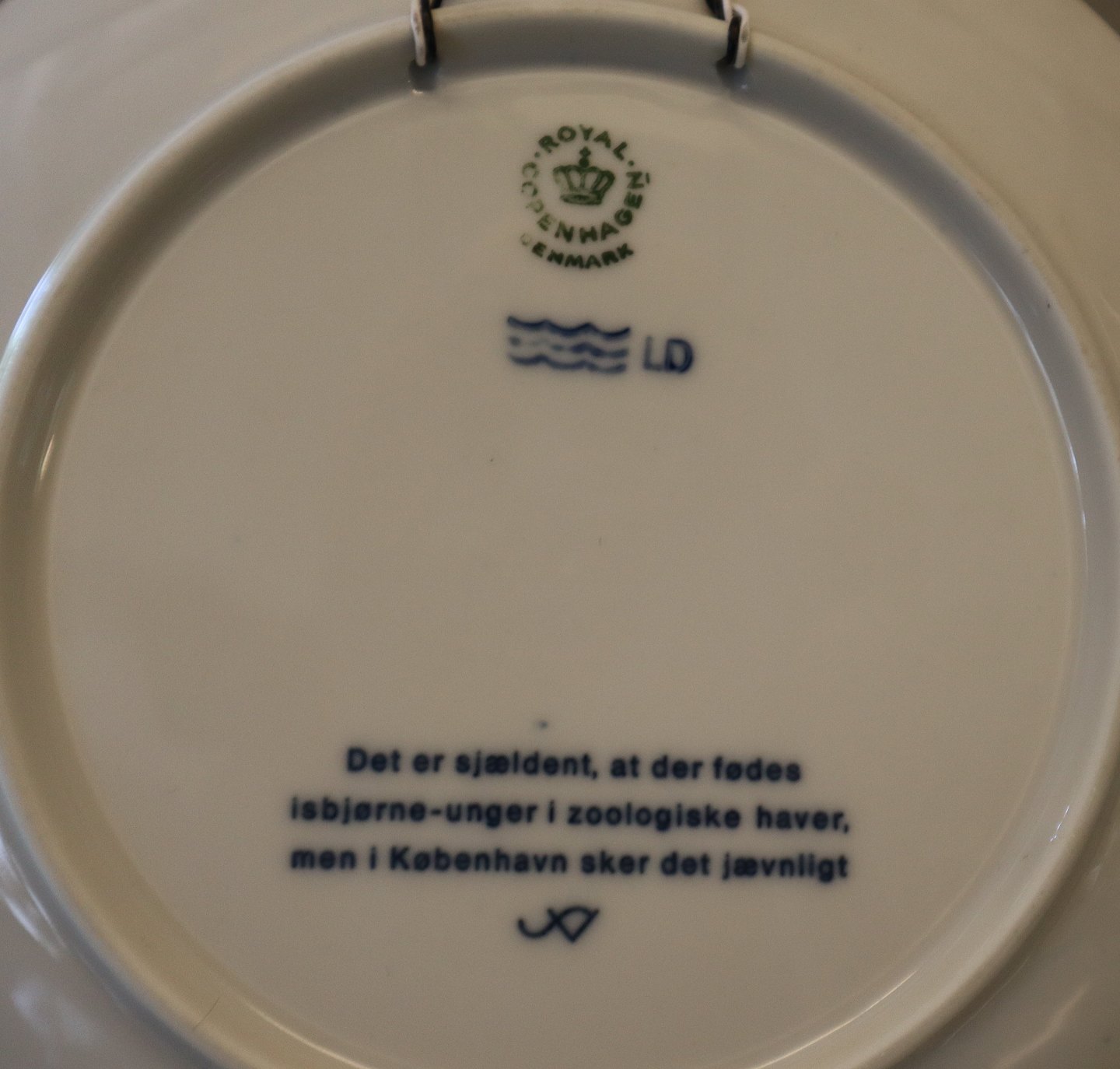 1982 Kgl. Zoo platte 18 cm Isbjørn med unge Zoologisk have København 18 cm