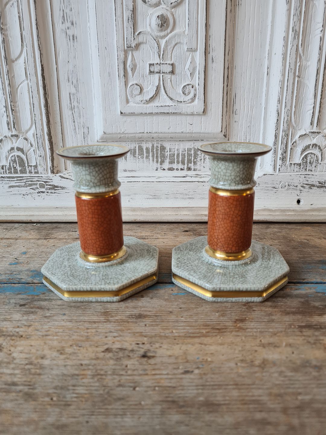 Royal Copenhagen orange-rød Craquelé par lysestager med guldkant No. 212/3303