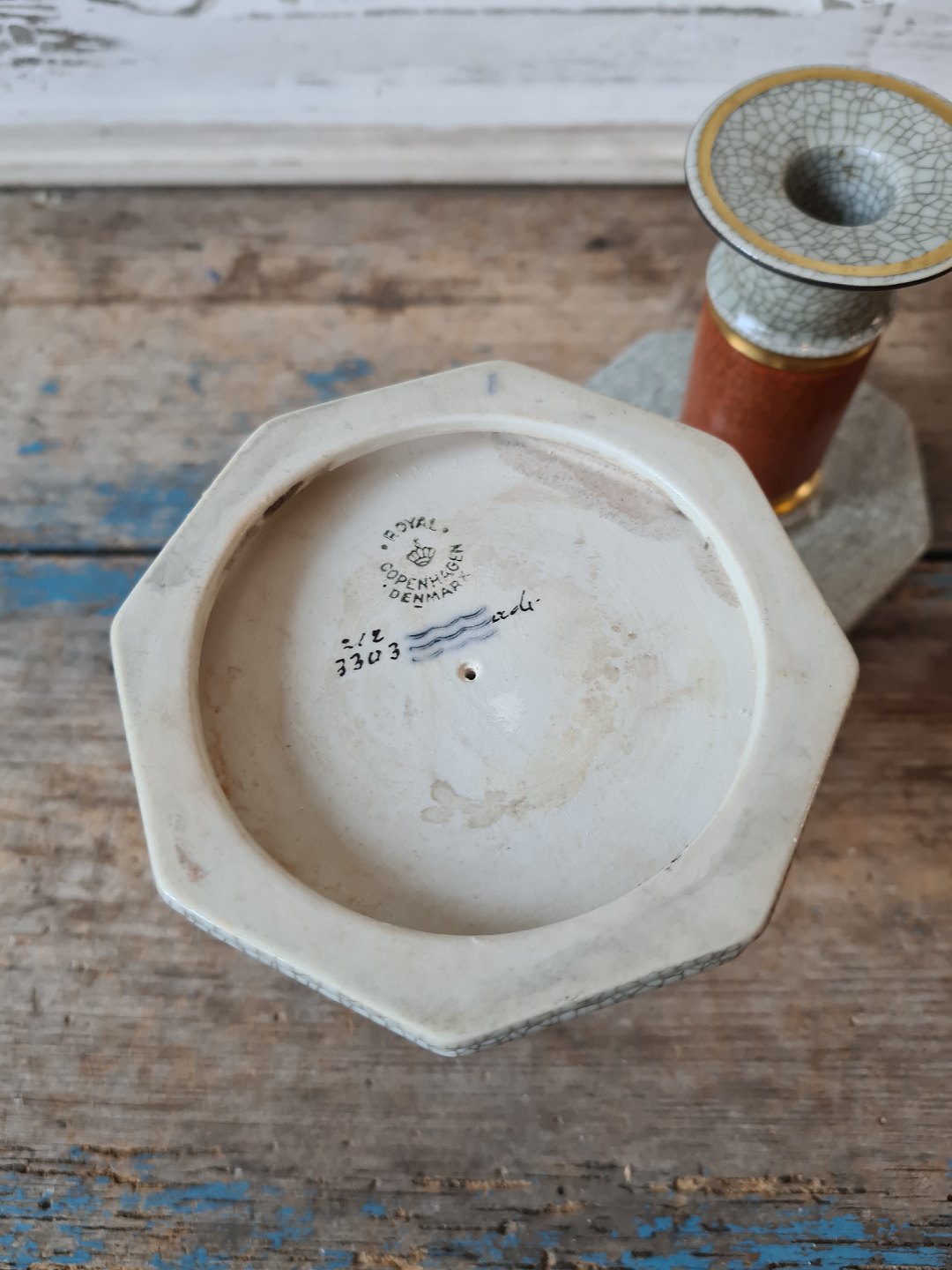 Royal Copenhagen orange-rød Craquelé par lysestager med guldkant