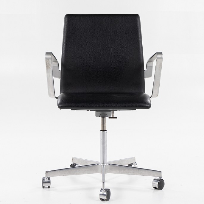 AJ 3291 - 'Oxford'-kontorstol med lav ryg, armlæn, højdejustering og sort semi-anilin-læder.