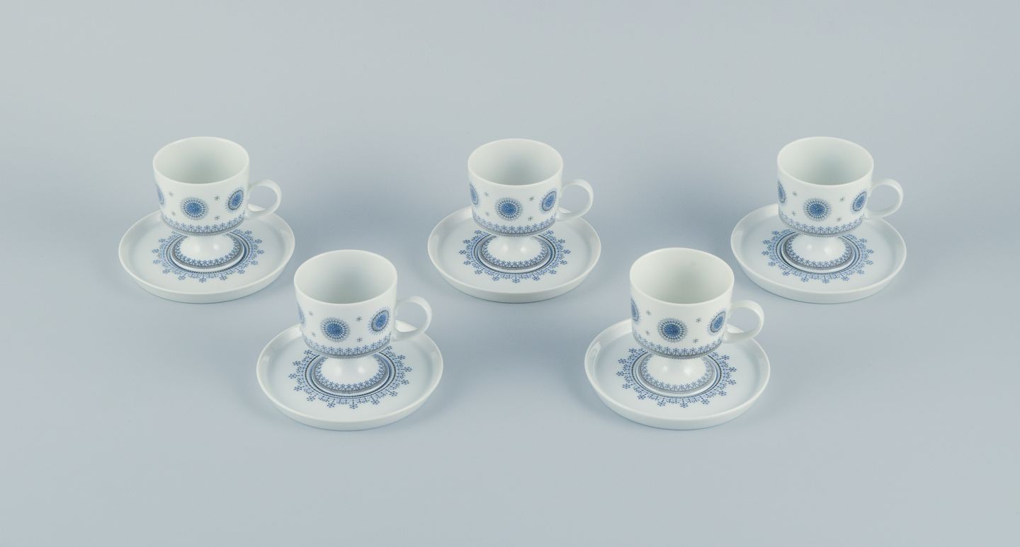 Tapio Wirkkala (1915-1985) for Rosenthal Studio-linie. Et sæt på fem mokkakopper med hank på høj fod. Modernistisk retrodesign.