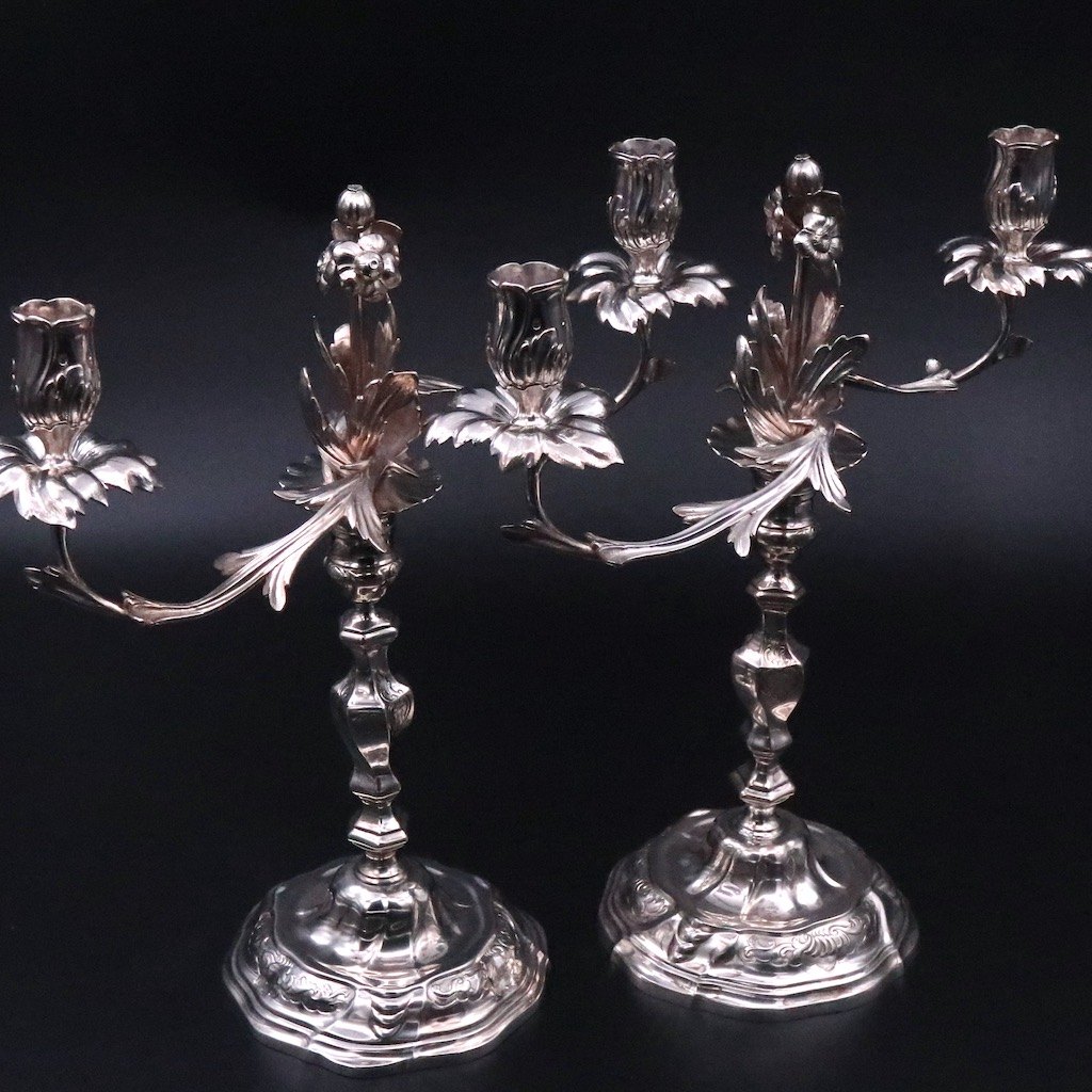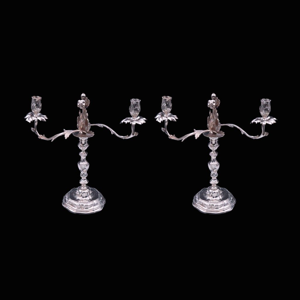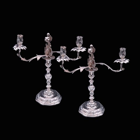 A. Michelsen. Et par to-armet kandelabra i sterling sølv - 1920.