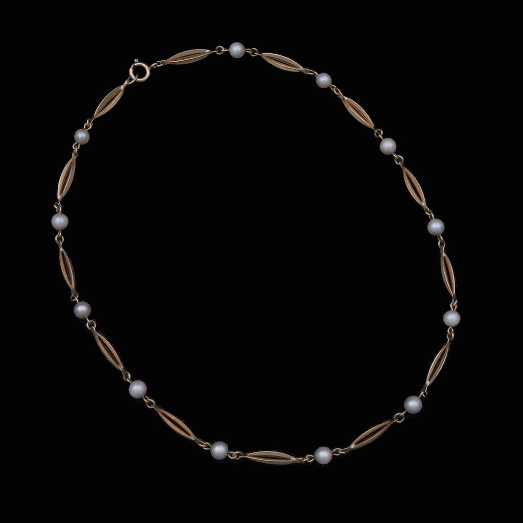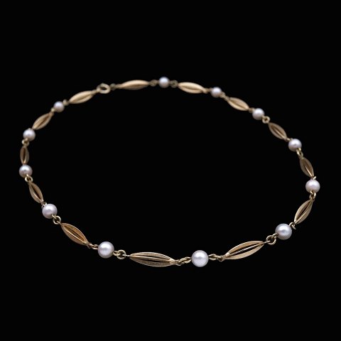 Hermann Siersbøl. Halskæde i 14k guld med perler.