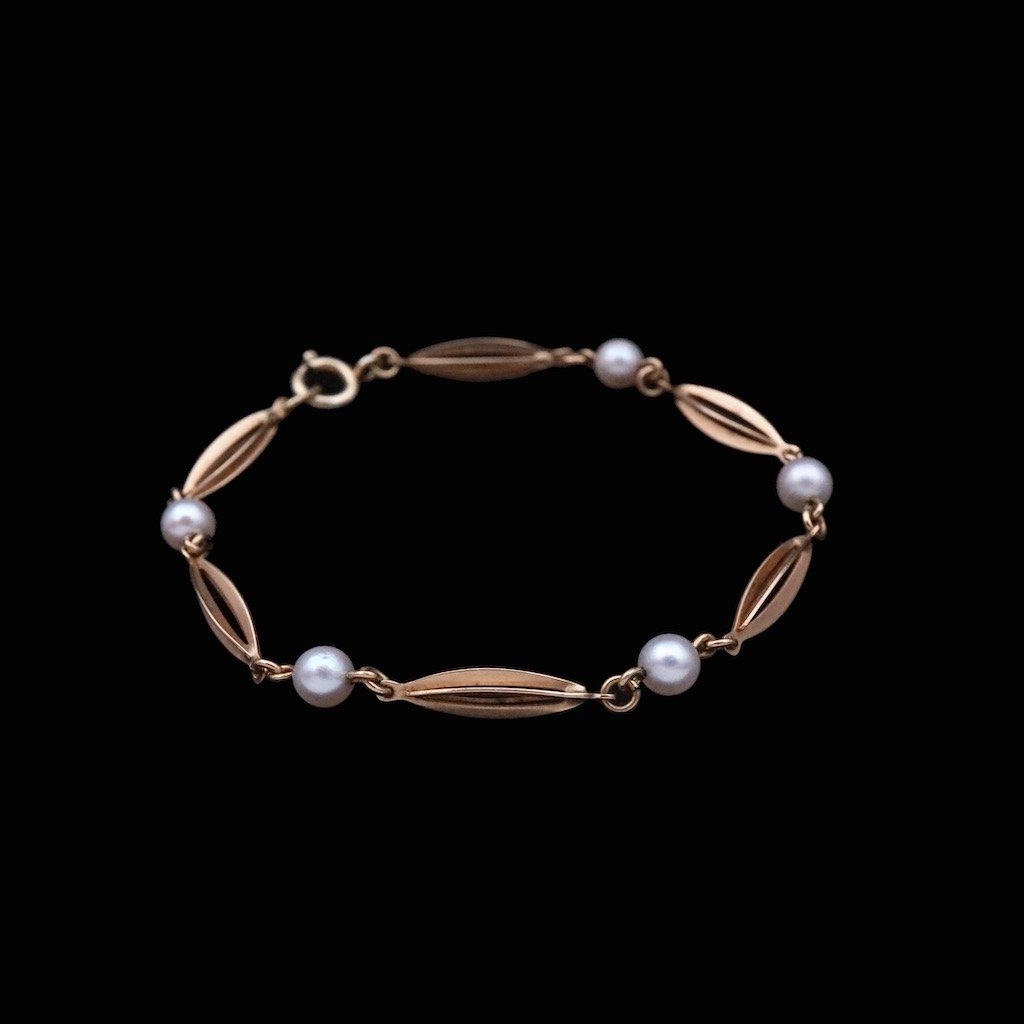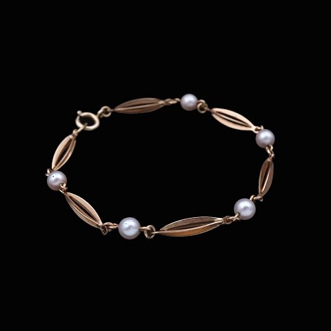 Hermann Siersbøl. Handmade 14k Gold Bracelet with Pearls.