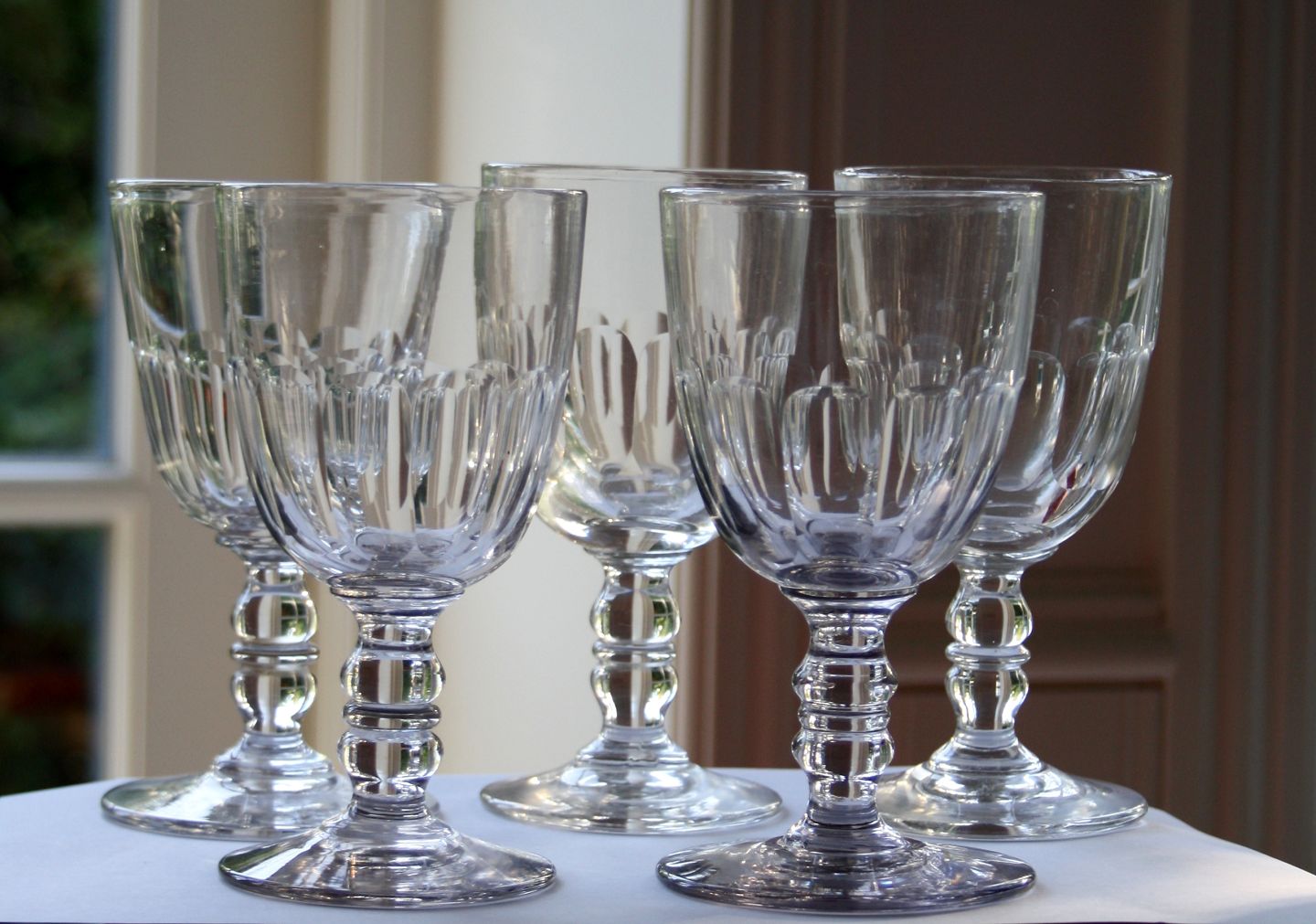Fransk inspireret Toupie form fra flere glasværker Holmegaard og Phønix, Aalborg. 2 af dem er antagelig franske krystalglas. Facetslibning på kumme og dobbeltkuglet stilk med rille imellem. Højde 15-15,5 cm. Øverste diameter 7,5-8 cm. Pris: 350 kr. stk. Lager: 5
