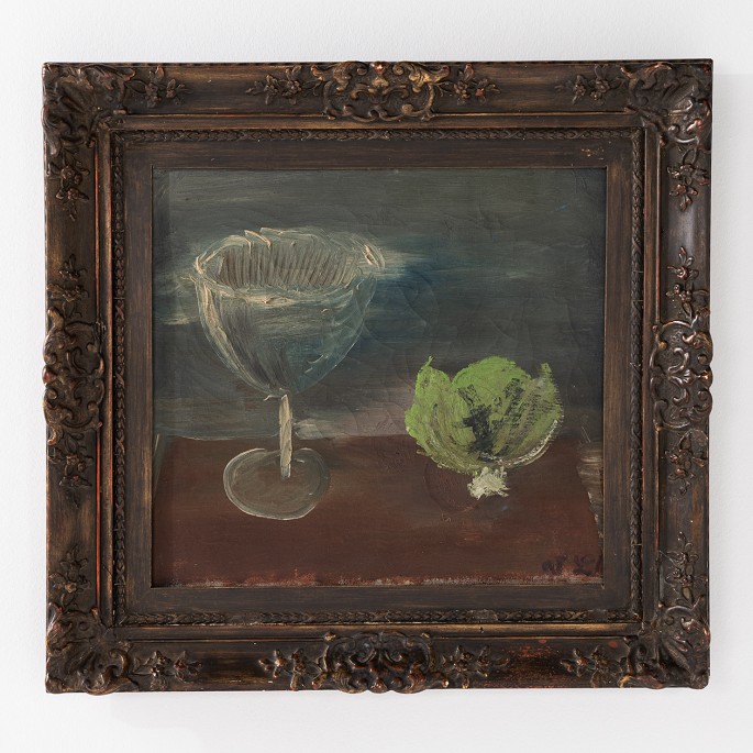 Maleri 'Opstilling med glas og salathoved' fra 1919. Signeret. Provinens: Christian Tetzen-Lunds (1852-1936) private samling. Har været udstillet i flere omgange - blandt andet på Charlottenborg ved Vilhelm Lundstrøms Mindeudstilling i 1951.