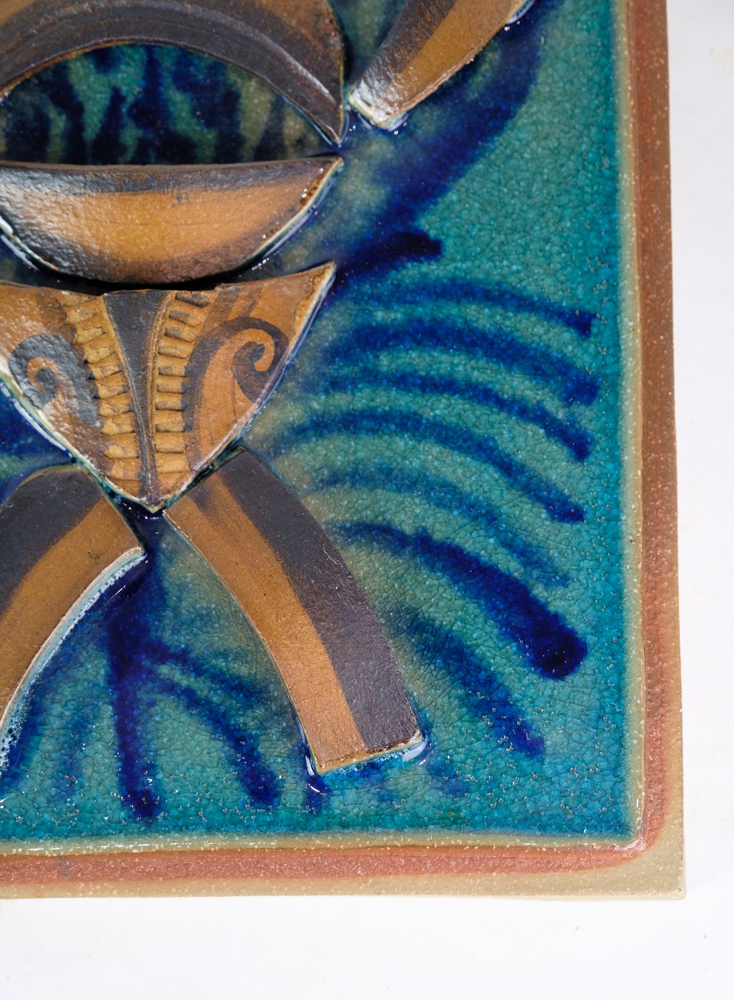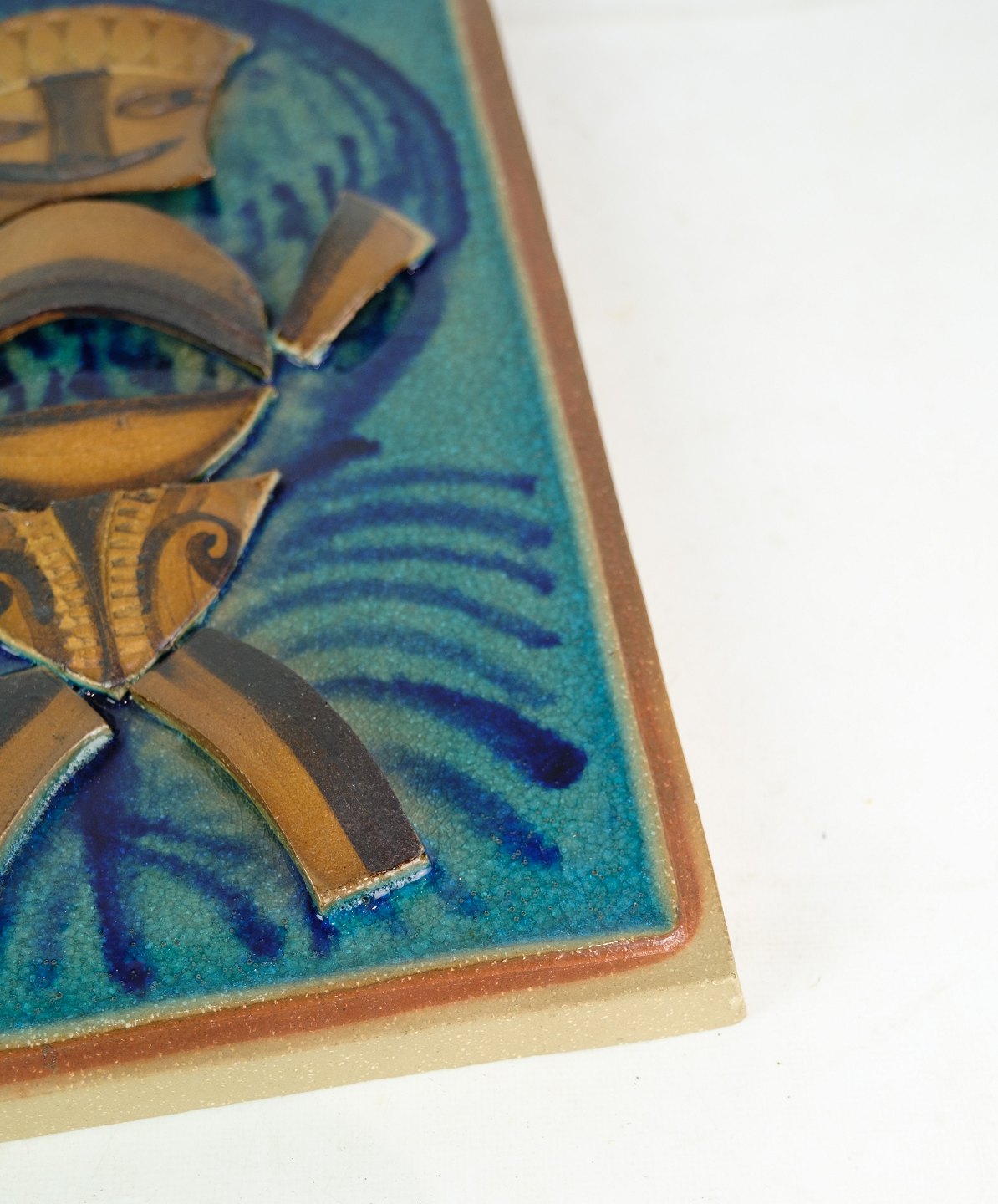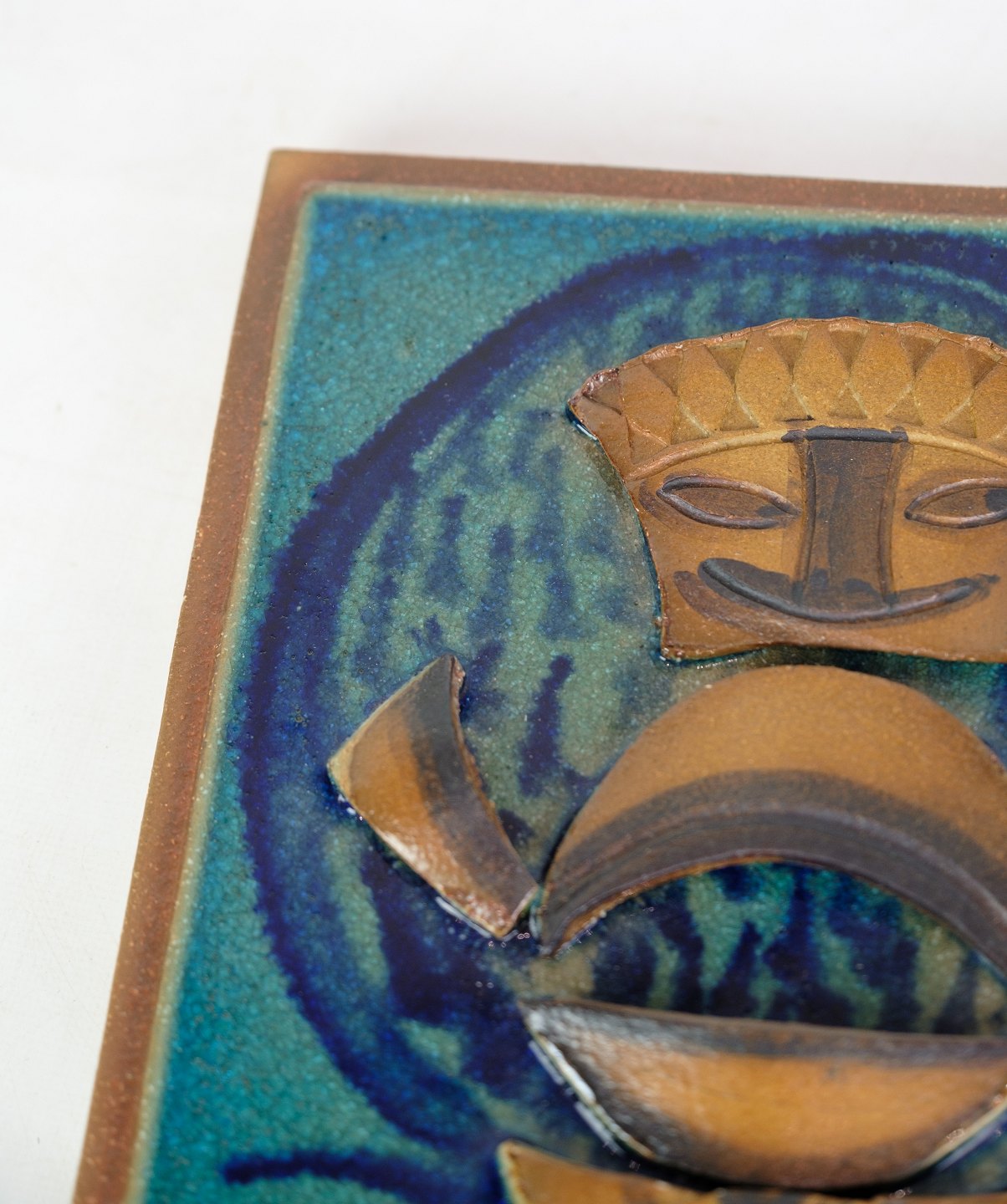 Relief af Søholm keramik med afrikansk motiv med brun og blålige farver fra omkring 1960'erne.