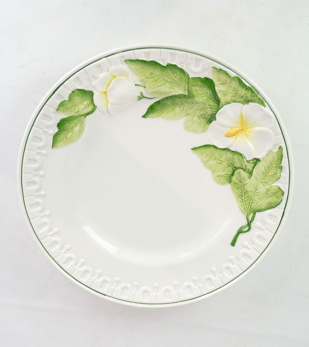 Hvide porcelæns tallerkener, dekoreret med blomster i Italiensk design. Står i flot stand uden skader. (Flere på lager, spørg efter antal)