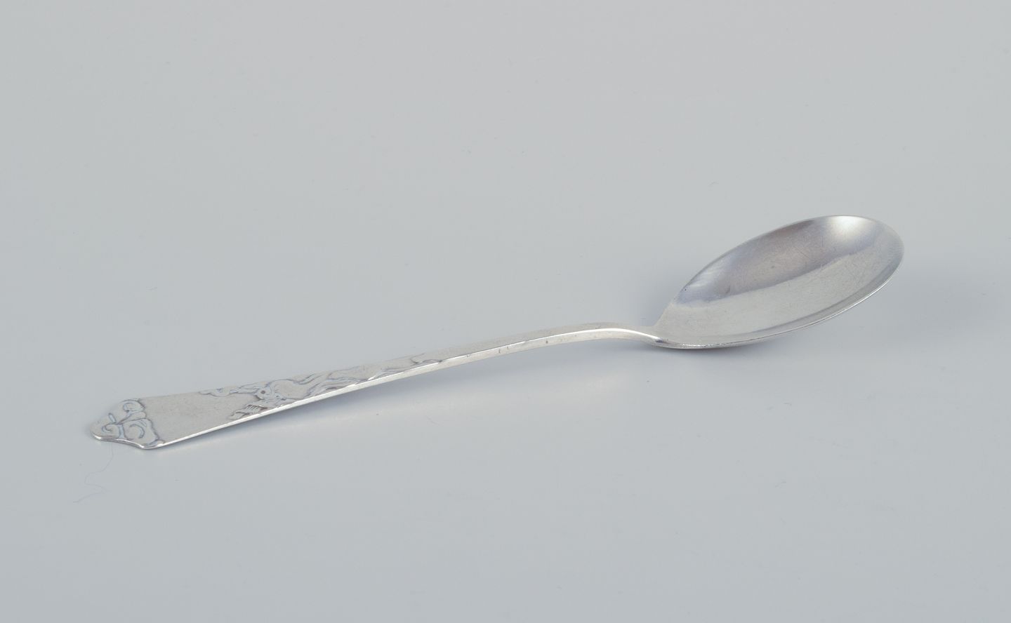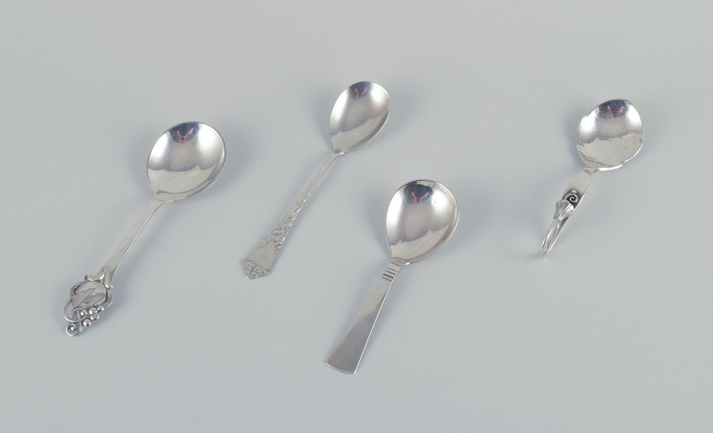 Danske sølvsmede, Cohr, Heimbürger med flere. Fire marmeladeskeer i tretårnet sølv i forskellige designs.
