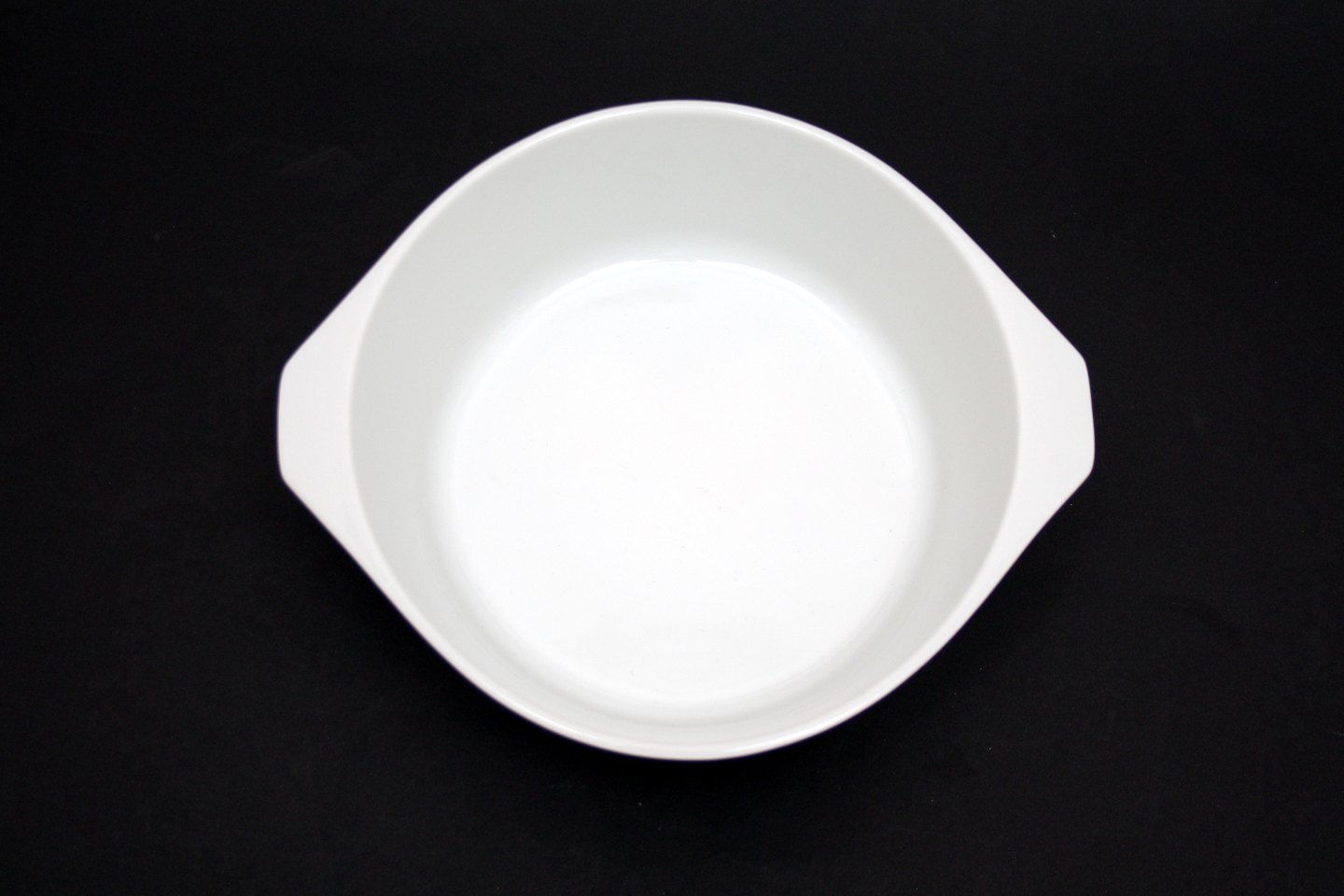 Text available in Danish: Gratinskål med ører, mellemstørrelse, Dan-ild 66, Lyngby
