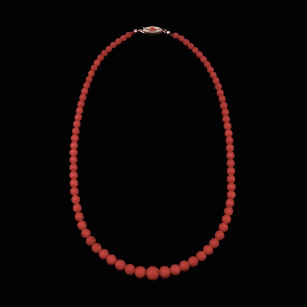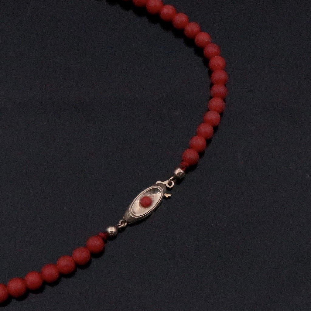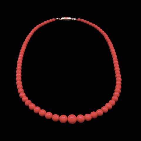 Chr. Veilskov. Koral halskæde med lås i 14k guld.