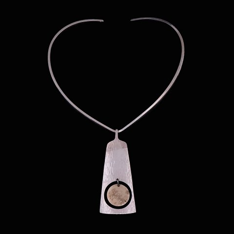 Hans Hansen. Moderne Halsring i sterlingsølv / vedhæng med lueforgyldning.